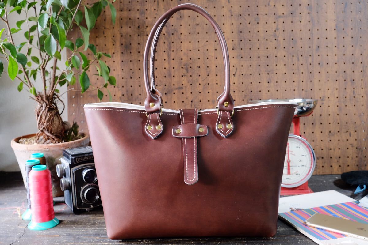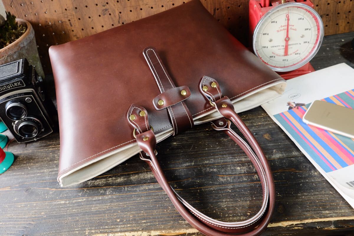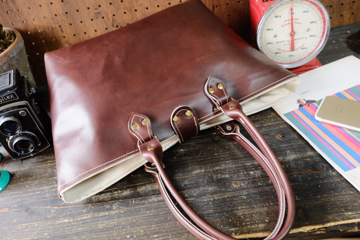 ◆厳選◇国産アンティークブラウンヌメ牛革レザートートバッグ 作家手作り★日本製帆布鞄一点物ハンドメイド