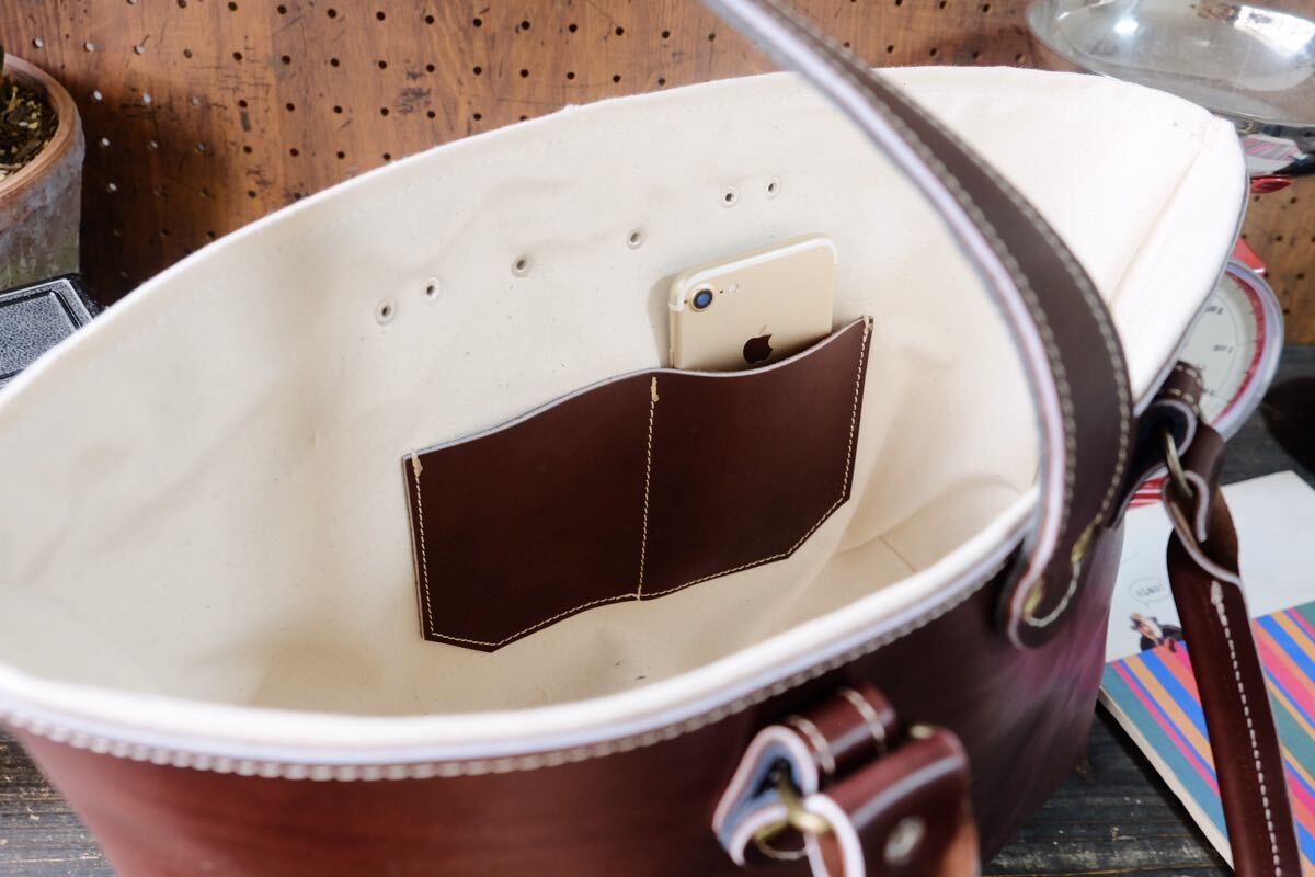 厳選したアニリン染めのアンティークブラウンヌメ牛革を中心に使用しクラシカルなデザインに仕立てました。裏地は丈夫な布でお創りしておりますので、耐久性とバッグとしての総合的な軽さを可能にしております。経年変化を楽しめ柔らかで丈夫な大変扱いやすいバッグです。