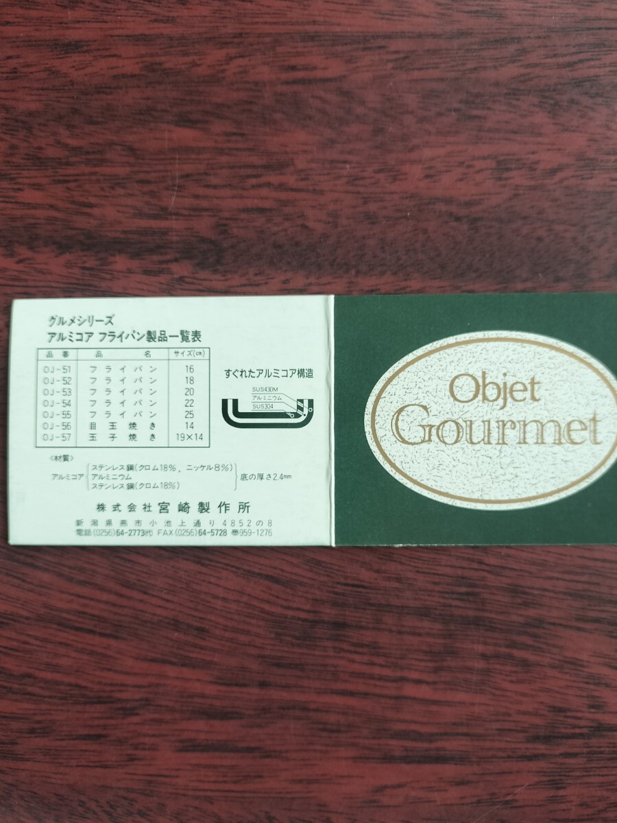 未使用★オブジェ objet グルメシリーズ フライパン 25cm★宮崎製作所 MIYACO★オブジェ OJ-55 アルミコア 日本製 箱付
