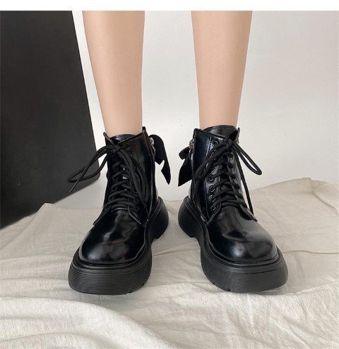 ショートブーツ 厚底 かわいい シンプル カジュアル リボン レディースシューズ 【40】25cm ブラック
