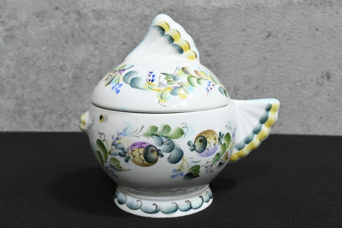 フィッシュ 魚型 シュガーポット 砂糖入れ 陶器製 ロシア ビンテージ 調味料入れ 塩入れ 洋食器 蓋物 小物入れ 伝統工芸品 希少 の出品です。