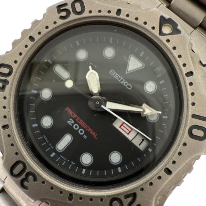 ♪【SEIKO/セイコー】QZ 7C43-6A10 プロフェッショナル メンズ 腕時計 黒文字盤 200m デイデイト★16478
