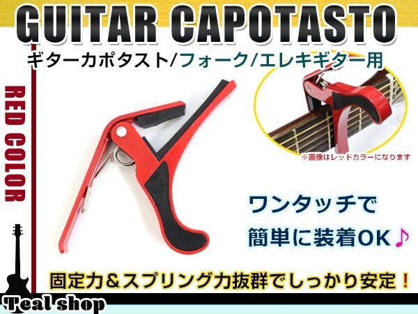 メール便 アコースティックギター フォークギター エレキギター 対応 バネ式クリップタイプ カポタスト カポ レッド 赤