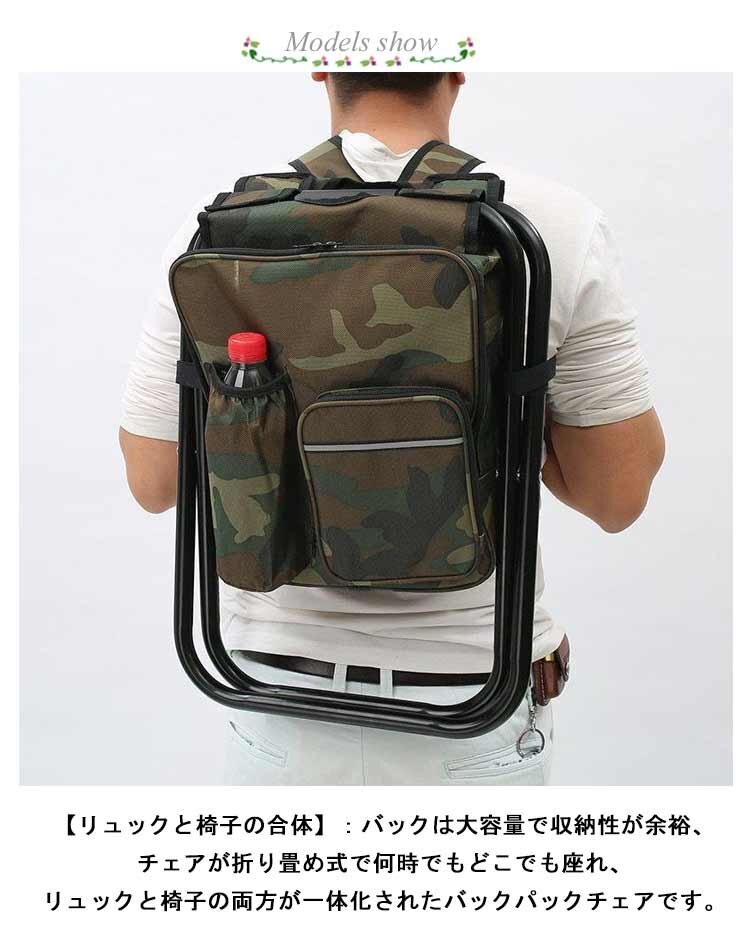 多機能椅子 イス型リュック 保温 保冷 折りたたみ コンパクト 撥水 リュックサック 保冷 キャンプ 運動会 アウトドア(迷彩柄)222mc