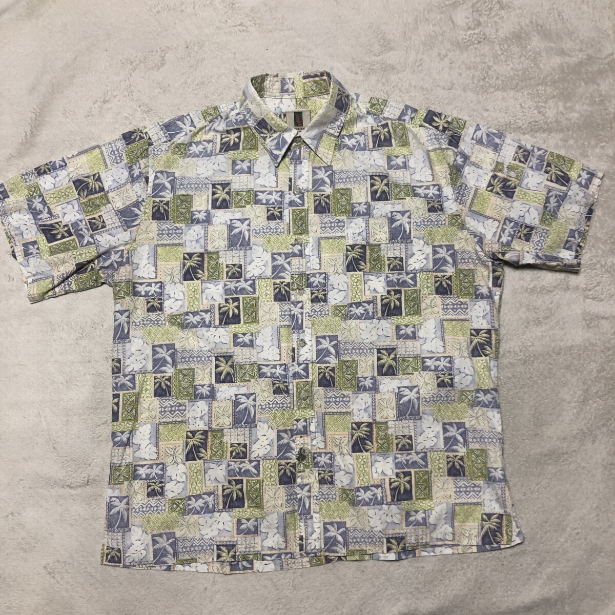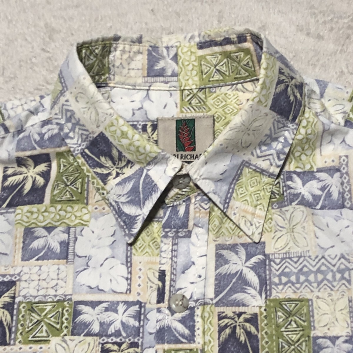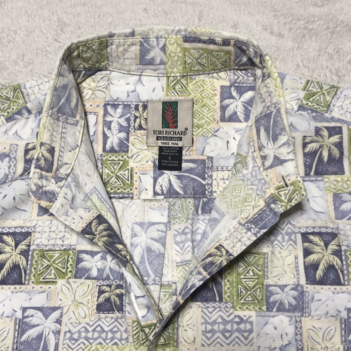 TORI RICHARD トリリチャード アロハシャツ ハワイ製 Cotton100% ヤシの木総柄 人気の大きいサイズ Lサイズ