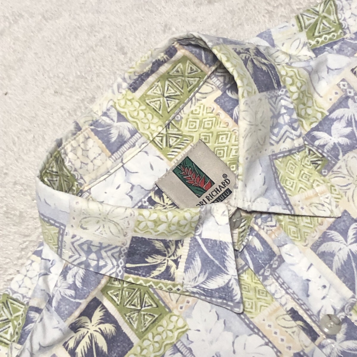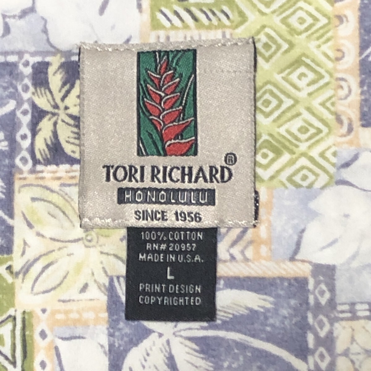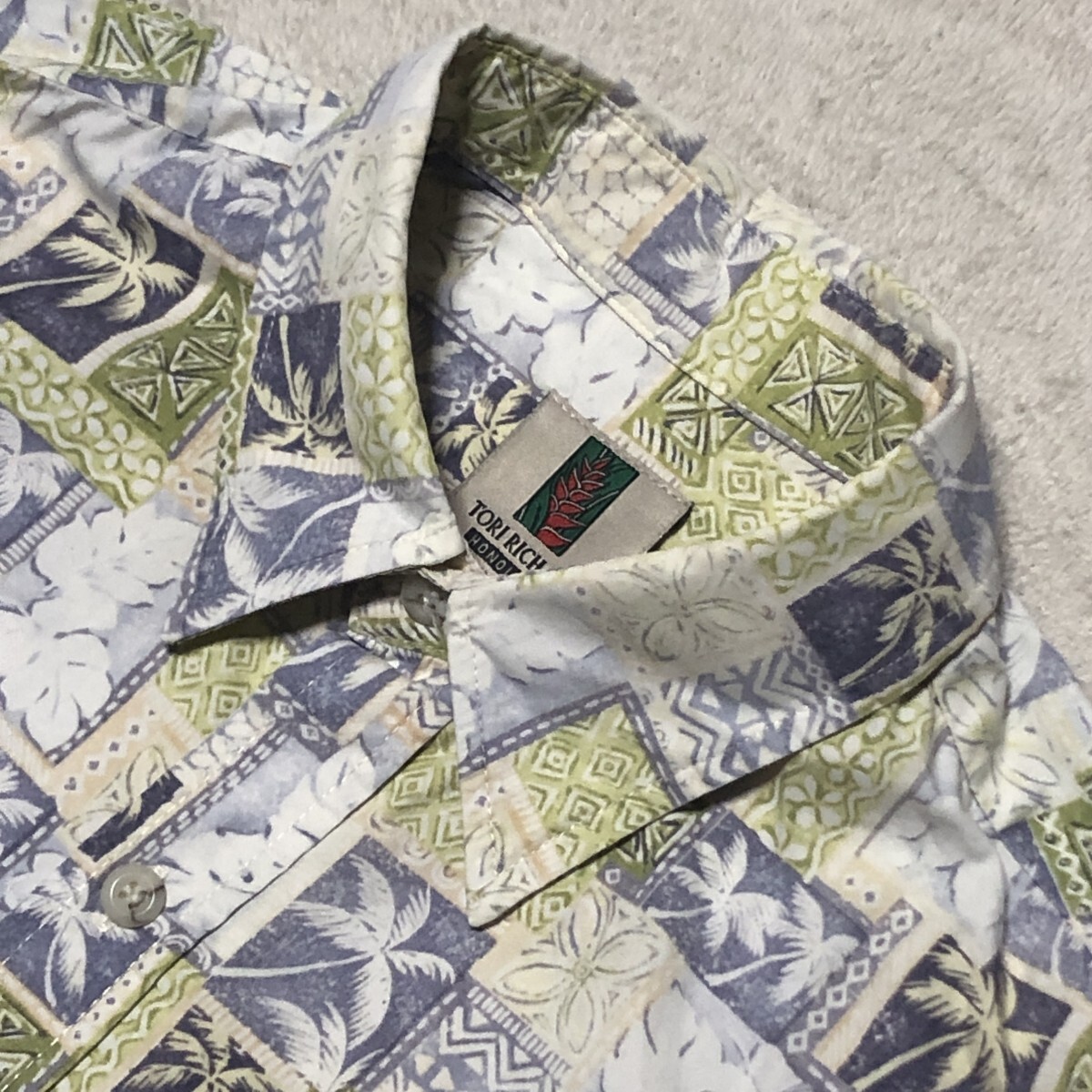 TORI RICHARD トリリチャード アロハシャツ ハワイ製 Cotton100% ヤシの木総柄 人気の大きいサイズ Lサイズ