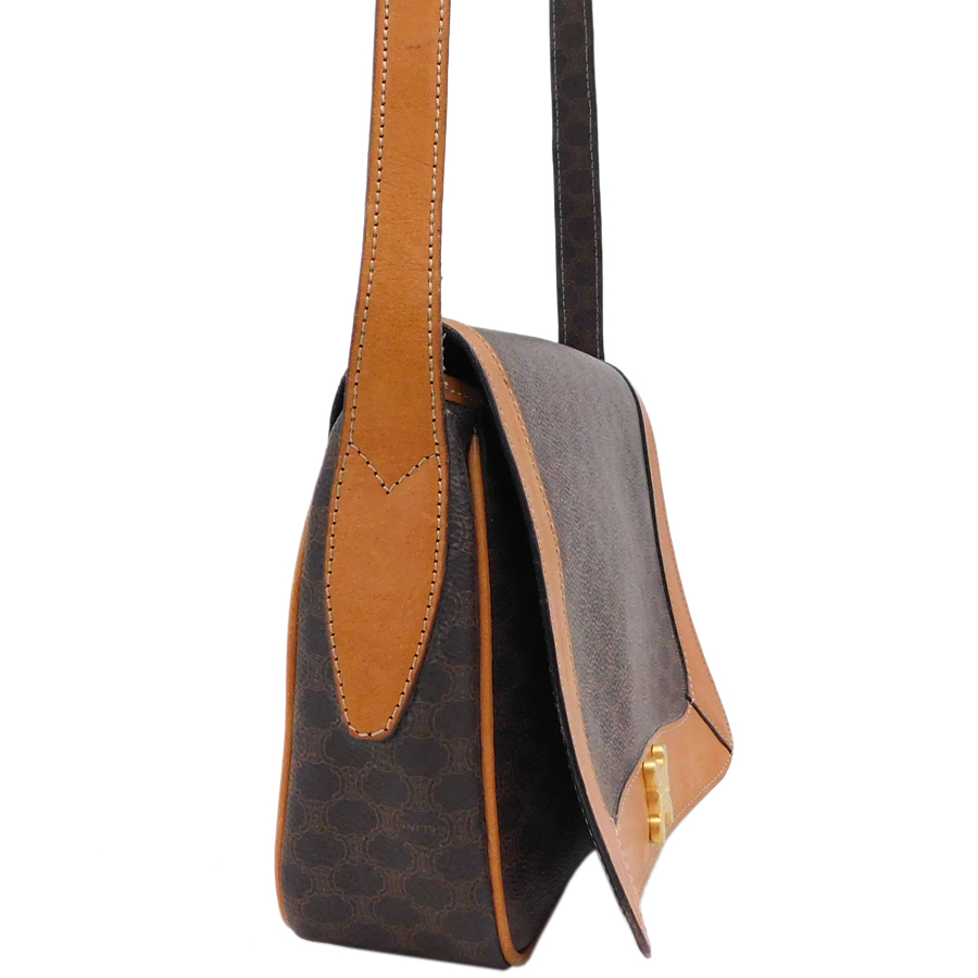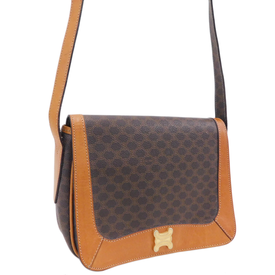 1円■ 美品/セリーヌ/ショルダーバッグ/ブラウン系/PVC×レザー/マカダム/レディース/CELINE ■E.Bgo.tI-01[中古]