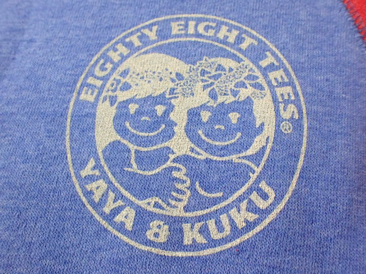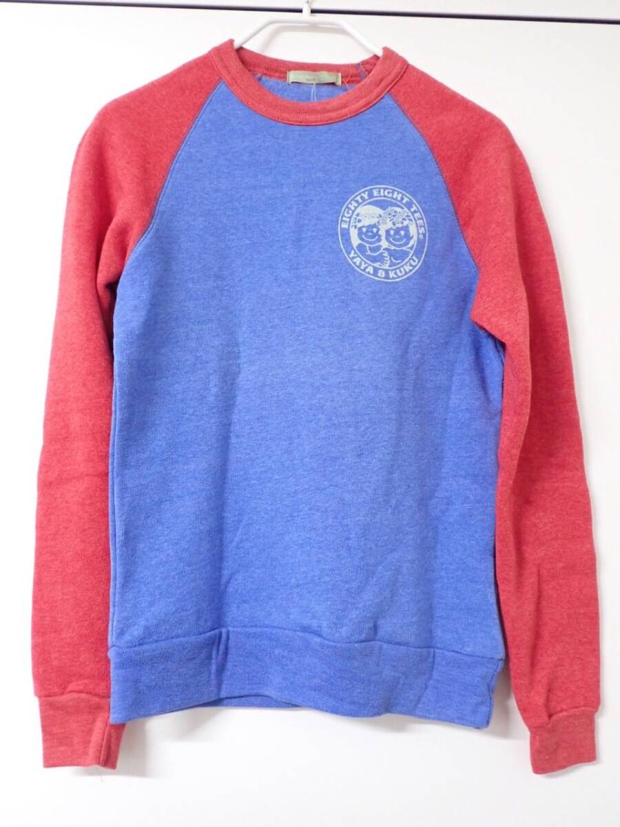 M513/6G〇88tees ラグランスリーブ 長袖 ロンT 赤×青 XS 中古品〇