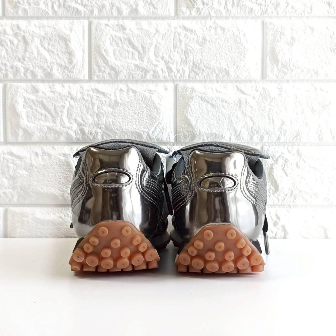 アッパーは光沢のあるシルバーで、スポーティながらもモードな雰囲気を醸し出しています。