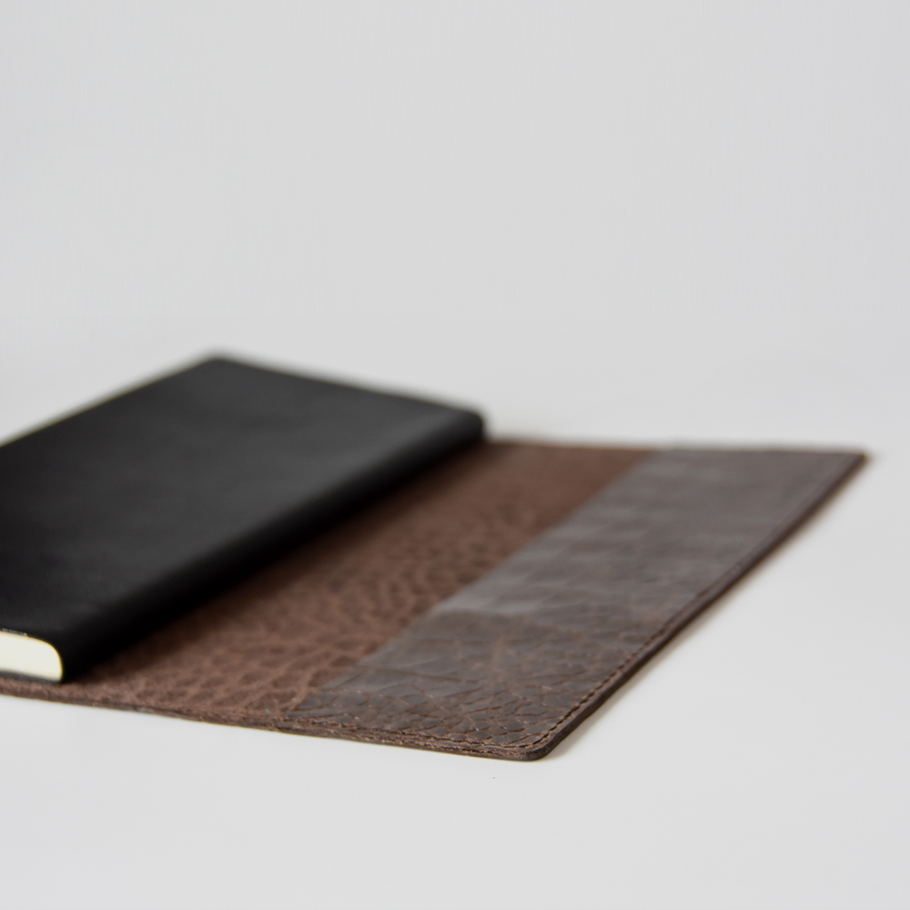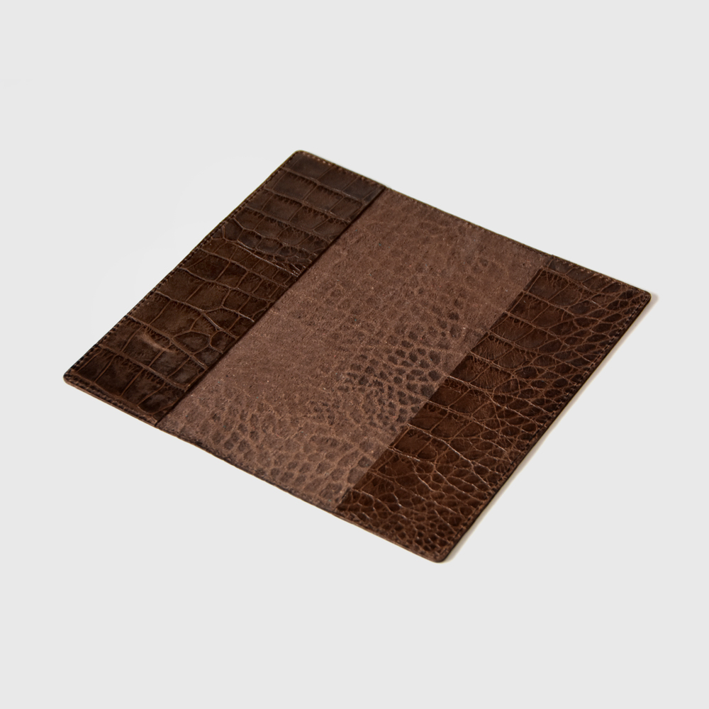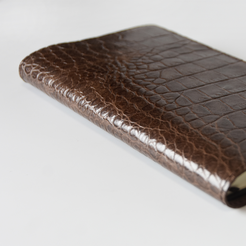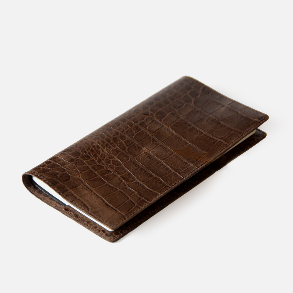 送料込み★かばん屋さんの手作り本革レザーブックカバー★ほぼ日weeks・weeks MEGA対応★クロコ型押しブラウン★手帳ノートなどに