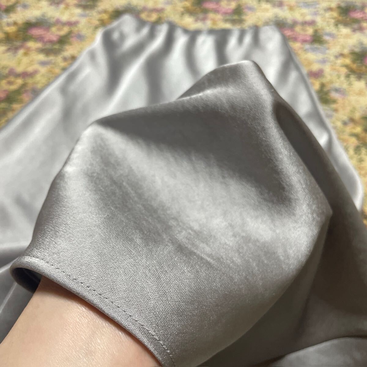 テカテカ&ツルっとした昭和感のあるサテンではなく、マットな艶にシワ加工のようなものが施された今っぽい生地感。