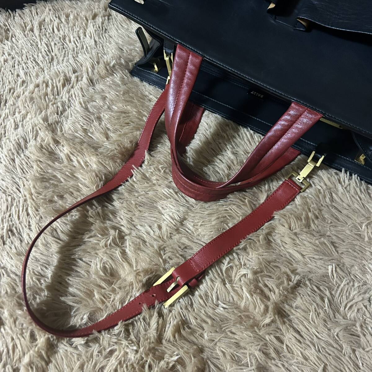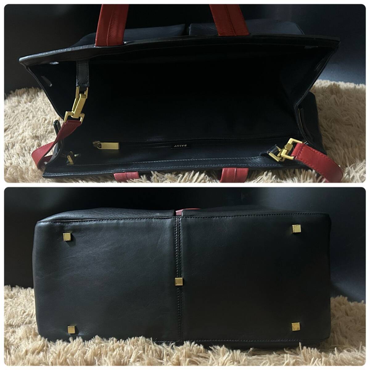 1円~【極美品】バリー BALLY ハンドバッグ メンズ ビジネス 手提げ 肩掛け 2way A4 PC 書類鞄 ブリーフケース Bロゴ レザー ブラック