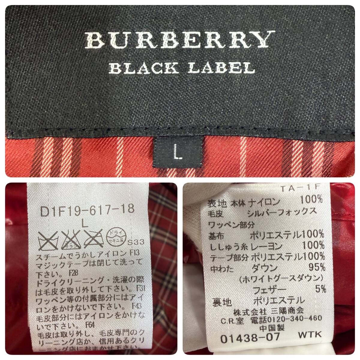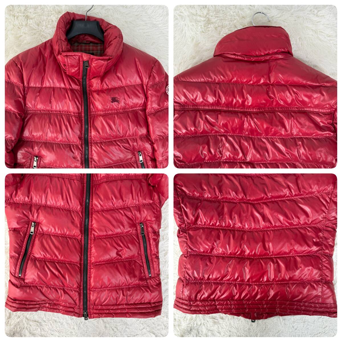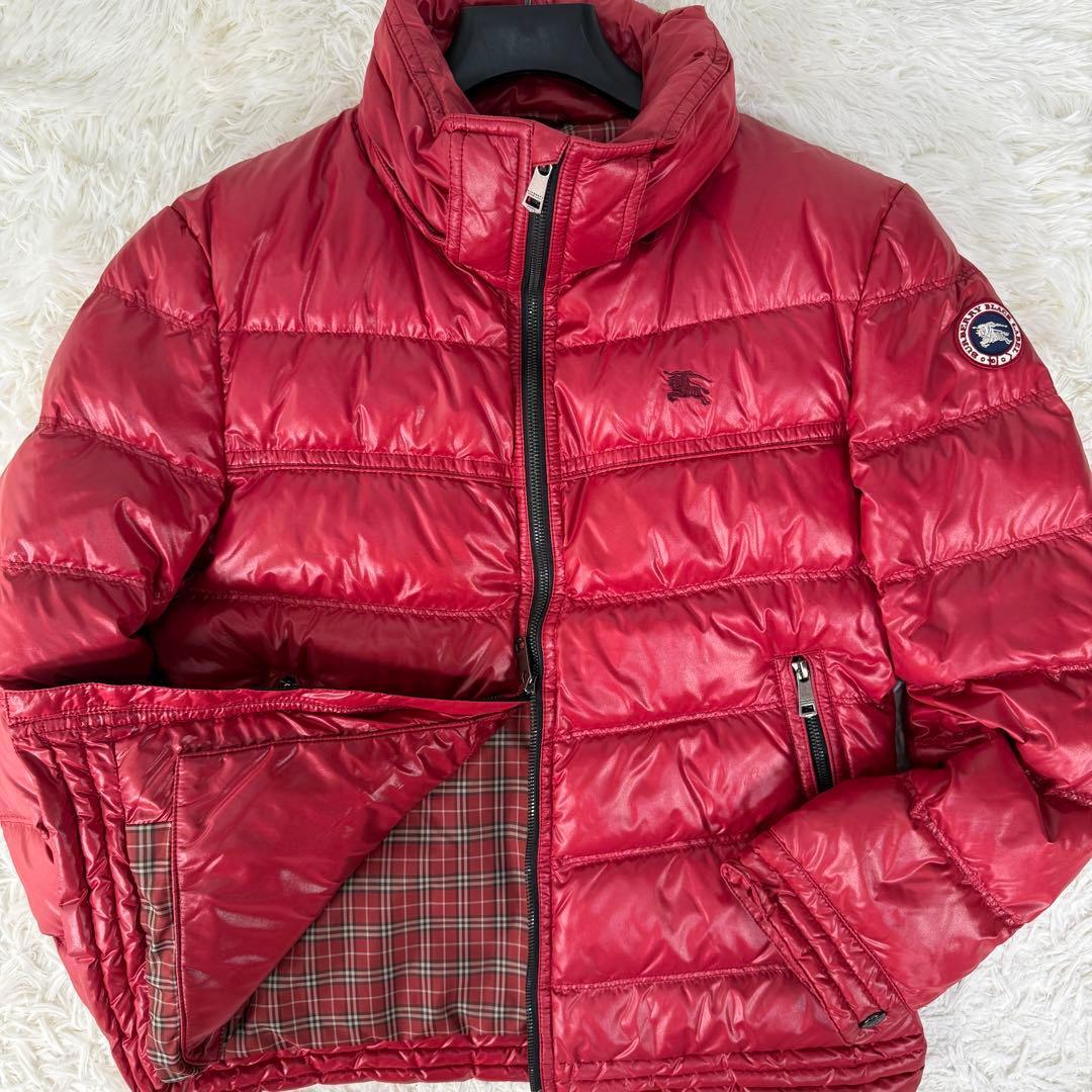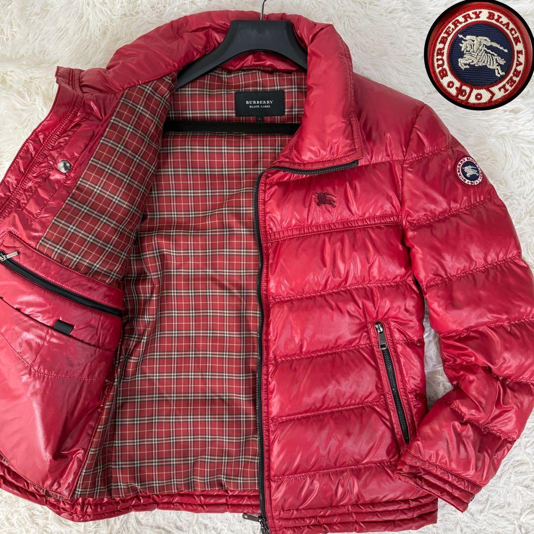 希少L 極美品 バーバリーブラックレーベル 刺繍ホースロゴ 袖ワッペン 光沢 ノバチェック ダウンジャケット メンズ BURBERRY BLACK LABEL