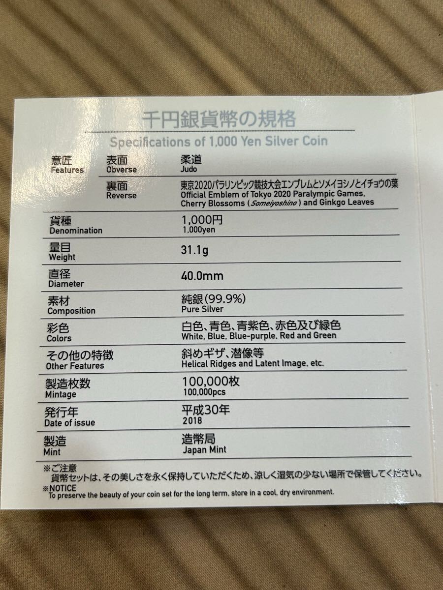 【1円スタート】東京2020パラリンピック競技大会記念 「柔道」千円銀貨幣プルーフ貨幣セット