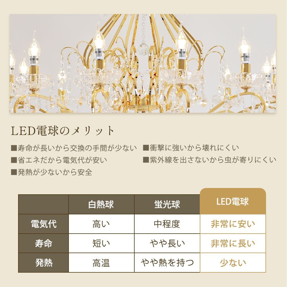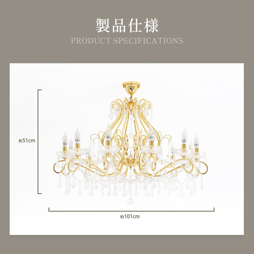 商品説明 | ![]() ☆LED電球サービスキャンペーン開催中!☆【送料無料!】新品 豪華 キャンドル12灯 LED クリスタル シャンデリア ワイド 101cm♪ ●キャンペーン期間中 広角LED電球12灯(¥14400-相当)お付けいたしまして驚きのプライス! ☆LED電球サービスキャンペーン開催中!☆ ※通常電球別売の為、価格記載の電球画像掲載がございますがキャンペーン期間中は無償提供(調光別途¥200-)させて頂いております※ ☆上質水晶ならではの最高の輝きを放つ新品クリスタルシャンデリア ☆添付画像では肉眼で見る本来のクリスタルの輝きをご確認いただけませんが、12灯の電球が上質クリスタル水晶を通し光の屈折で光の持つ本来のカラーをかもし出しダイヤモンドのように輝きながらワット数以上の明るさでお部屋を照らします ☆スタイルは飽きの来ないシンプルなデザインです♪ ☆とても明るく豪華なシャンデリアです ☆シャンデリア本体は調光にも対応しております ※調光ご希望の場合、調光対応LED1個¥200-アップと汎用調光器(Panasonic製LED用調光器推奨)が必要です ☆付属電球・・・口金E17広角LED白色又は暖色12灯(明るさ40ワット消費電力4ワット 暖色36Lm/W・白色40Lm/W) ※調光対応LED1個別途¥200- ※ご注文後ご希望のLED電球をお申し付けください ☆取り付けに関しましてはワンタッチでは御座いませんが(配線はワンタッチ)引掛けシーリングに対応しております ☆リビング等に最適なゴージャスクリスタルシャンデリアを是非この機会に! ☆サイズ・天井より下に最短72cm(飾り部分含む)から最長140cmまで調整可能 直径約101cm 重量約13キロです ※140センチ以上ご希望の場合はご注文後お申し付けください ![]() |