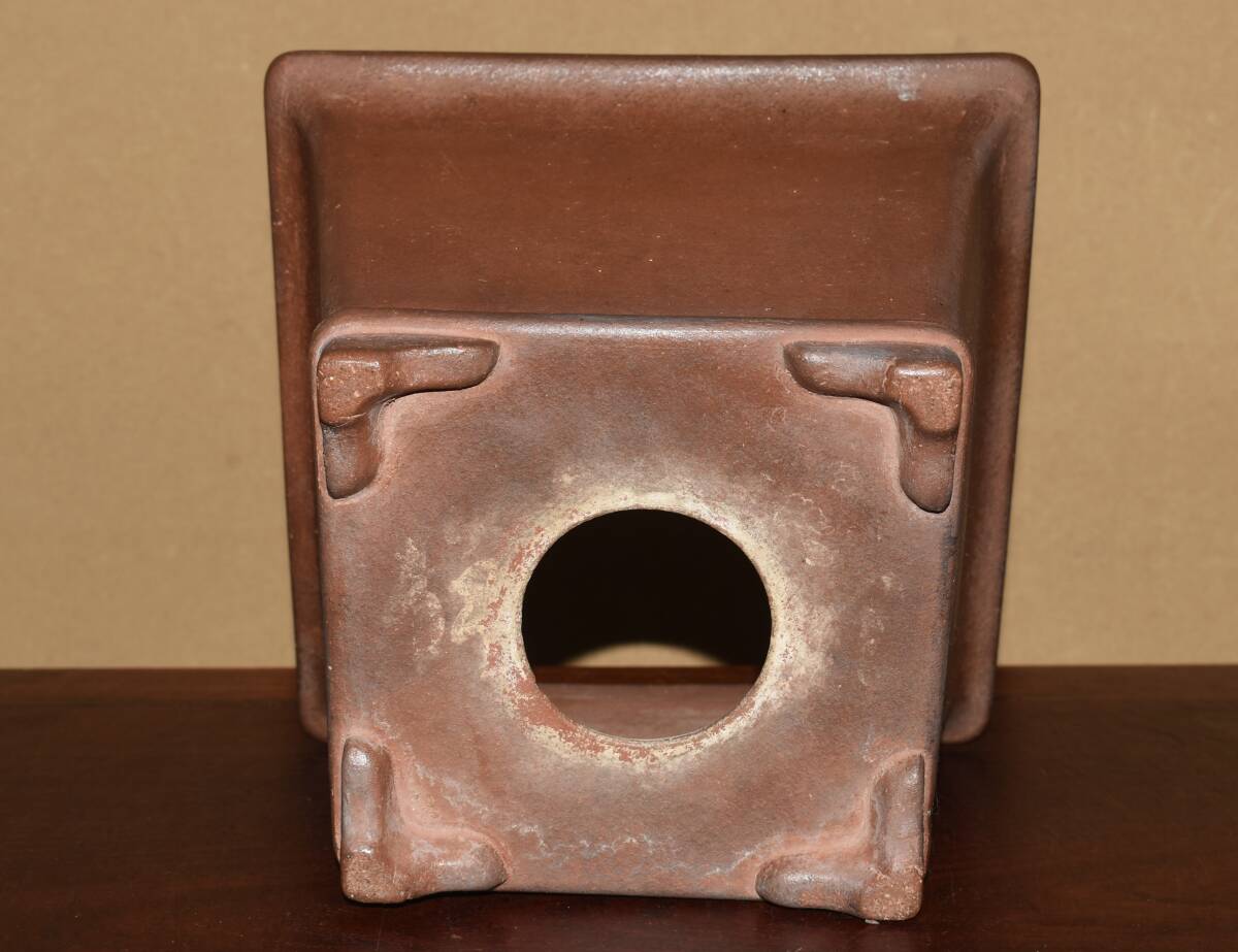 サイズ 23,3×23,2×17,4cm 中国古盆器<紫泥★時代乗り抜群★泥味抜群・使い頃サイズ・松柏に最適・大人気型>外縁下紐正方鉢のご紹介です・・紫泥の泥味最高、松拍に最適。100年以上経過した作・紫泥の泥味が良く、実用にも優れた素晴らしい逸品です。目立つ傷はありません。国風展などには最適。・・・・・ 状態を良くご確認の上、ご入札宜しくお願い致します。 その他、大変古い物ですので縁・足等にホツ・スジ・カケ等がある場合がございます。画像を良くご確認の上、御入札宜しくお願い致します。完品をお求めの方は入札をお控えお願い致します。*注意事項* オークション終了後48時間以内に必ずご連絡をお願いします。ご連絡がない時は、ご購入意思がないと判断し、落札者さま都合のキャンセルとさせて頂きます。再三のご連絡を差し上げても、ご連絡がない場合は、時点繰り上げとさせて頂きます。マイナス評価の多い方や新規の方を削除する場合がありますので、ご了承下さい。また、入札価格が低価格の場合は取消終了とさせて頂く場合がございますので、ご了承願います。古い物等ございますので小さな傷等は、見落とす場合がございますので、写真を良くご覧になり納得の上ご入札して下さい。また、完品をお求めの方は入札をお控えお願い致します。キズ・破損等のご連絡は商品到着5日以内にご連絡ください。それ以降は対応致しかねますので到着後、商品を必ずご確認ください。輸送中の事故(鉢が割れる、枝が折れる等)につきましては商品到着時に確認し取引ナビまたは、お電話にてご連絡下さい。