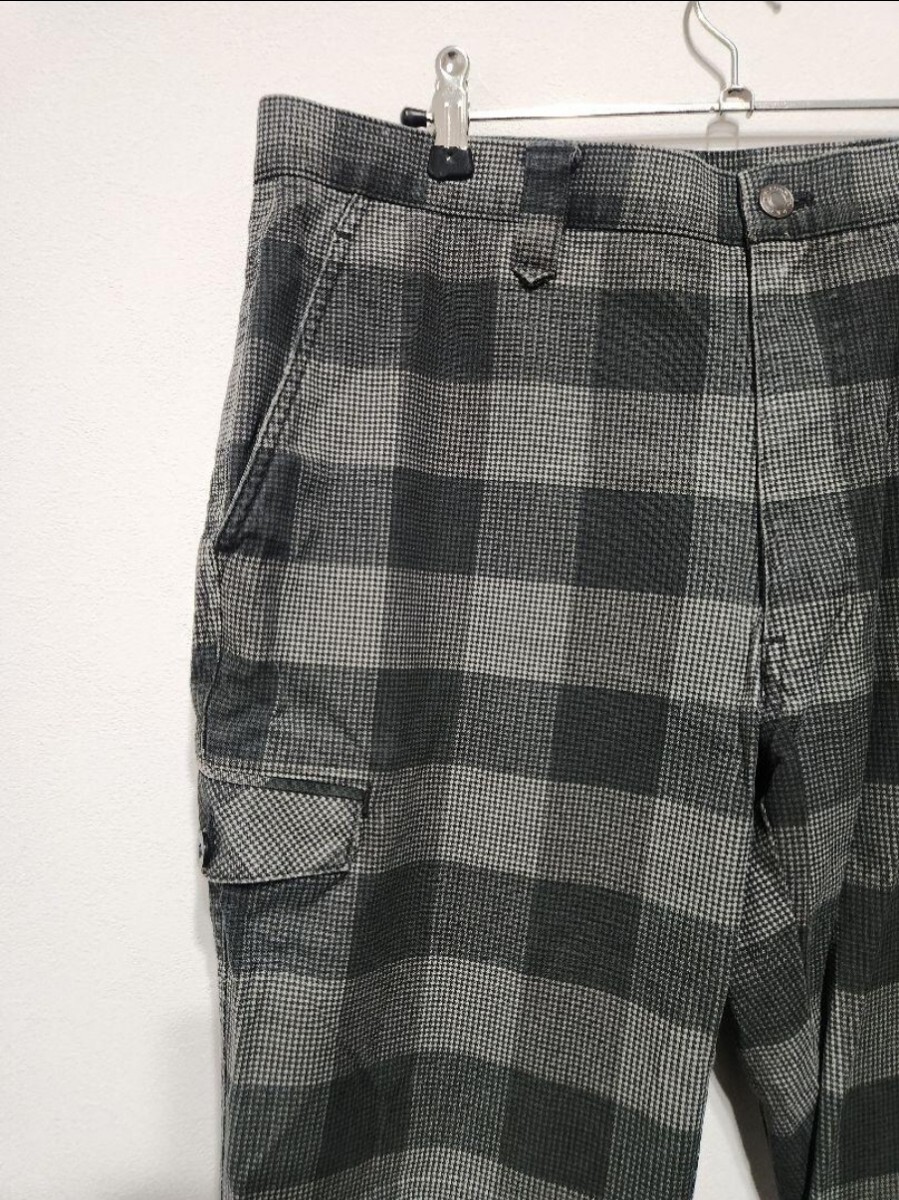 グレー×ブラックの落ち着いたチェック柄で、上品な印象のパンツです。