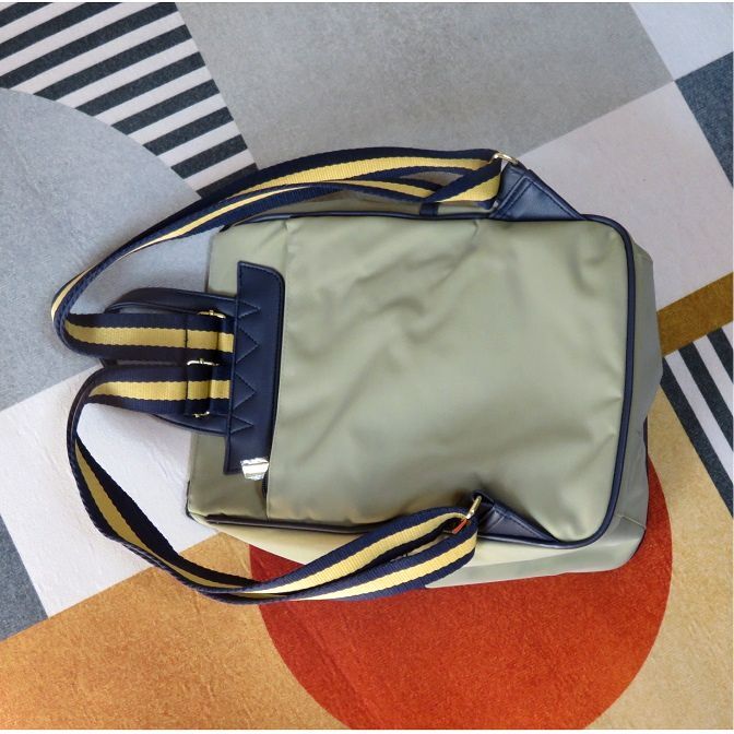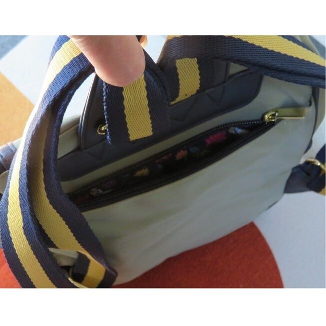 小ぶりながらも見た目以上の収納力。内/外側にポケットが多くマザーズバッグのような使い勝手の良さなので、普段使いはもちろん旅行などにも便利だと思います。