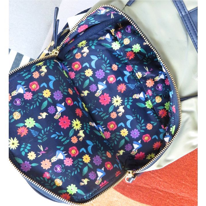 表面はシンプルなリュックですが、内布にはアリスの世界観が描かれています。