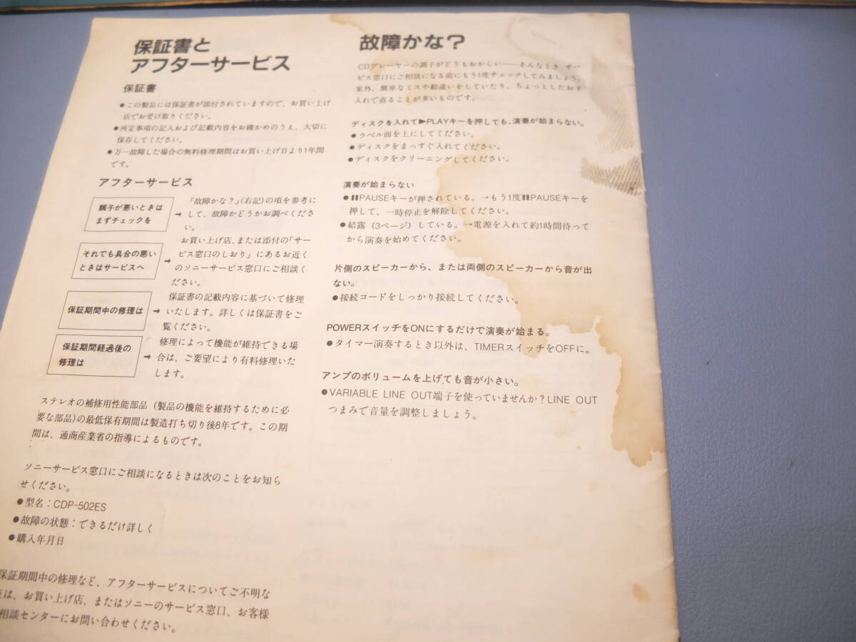 [取扱説明書のみ]SONY/ソニー CDプレーヤー CDP-502ES用