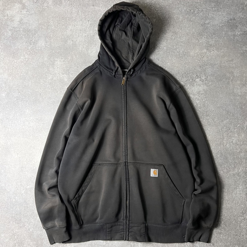 雰囲気系 Carhartt フルジップ スウェット フード パーカー L / カーハート トレーナー RAIN DEFENDER 墨黒