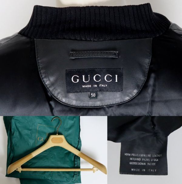 GUCCI leather bomber down jacket size 50 Black グッチ レザー ボンバー ダウンジャケット <色> Black <素材> LEATHER GOOSE DOWN INSIDE <サイズ> 50 <寸法> 身幅68着丈63.5袖丈93(単位:㎝) <商品状態> リブに少々汚れ、多少の擦れはございますが比較的着用感の少ない綺麗なお品です。 <備考> イタリア製、アーカイブ商品、ハンガー・ガーメントケース付属 ■支払方法 YAHOOかんたん決済で落札価格+送料をお支払いください。 ■発送詳細 佐川急便、送料全国一律900円