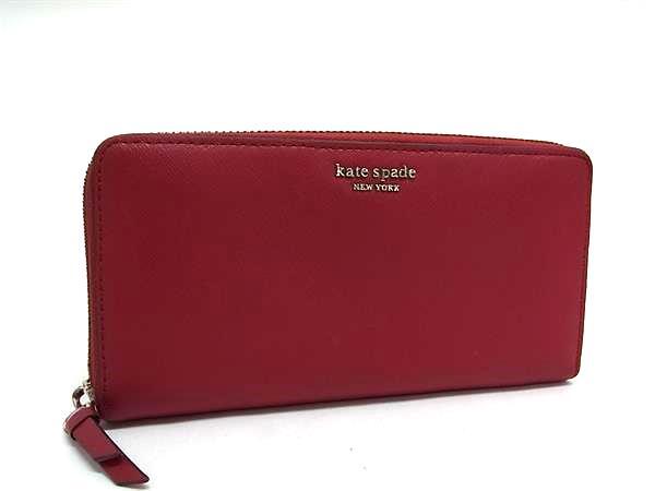 kate spade ケイトスペード WLRU5448 レザー ラウンドファスナー 長財布 ウォレット レディース レッド系 DI4869