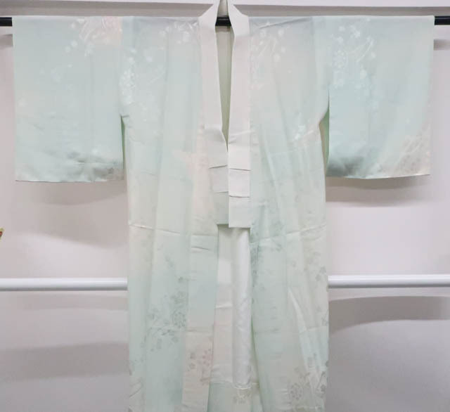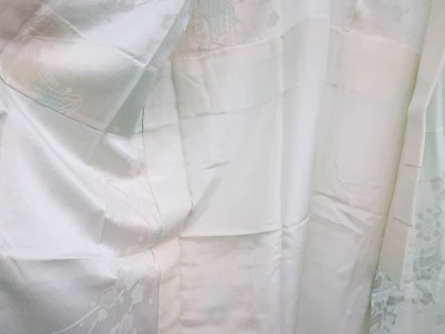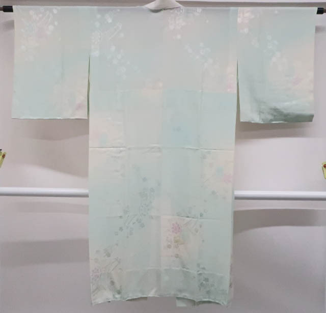 リサイクル商品ではございますが、大変良い状態のお品です。 地色は 淡い青緑・淡い黄です。 1枚目の画像が近いお色かと思われます。 素材は正絹です。 |