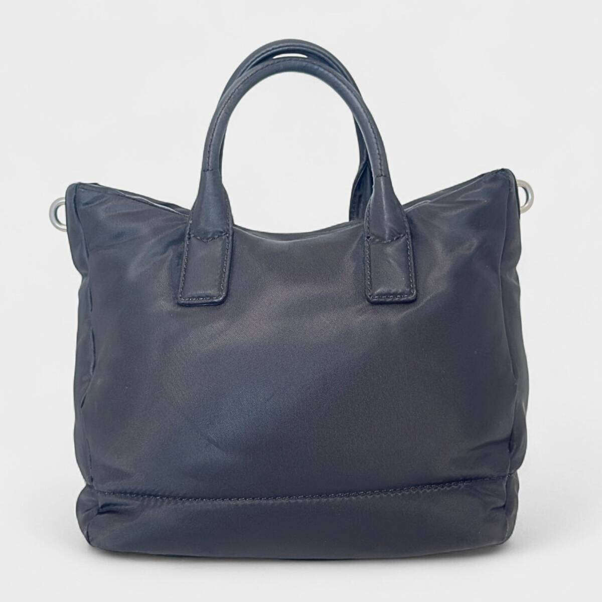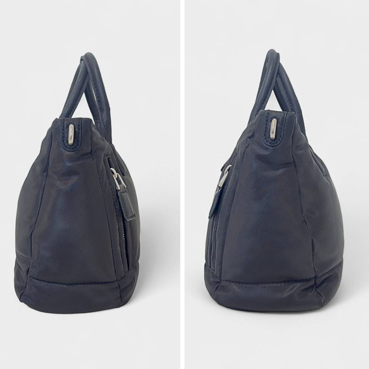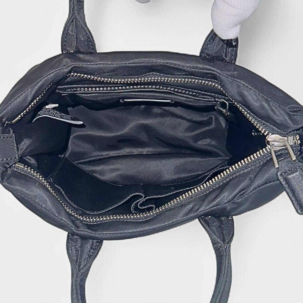 肉厚ナイロン×レザーの実用派ミニトート。手持ち/斜め掛けの2wayでタウンユースから旅行のサブバッグまで幅広く活躍。前後外ポケット+内側小分け多数で荷物が散らからず、ブラック×シルバー金具でコーデを選ばない万能デザインです。