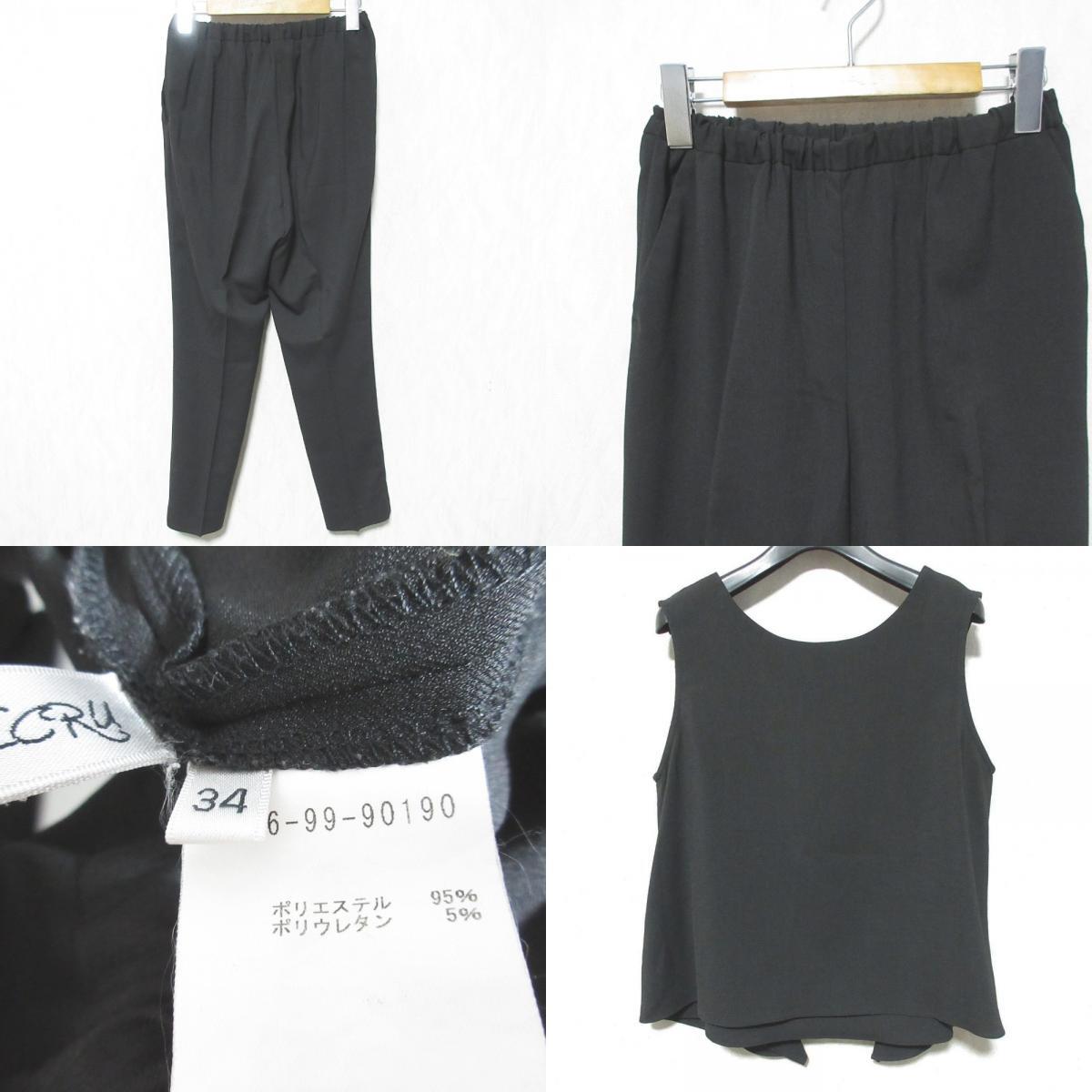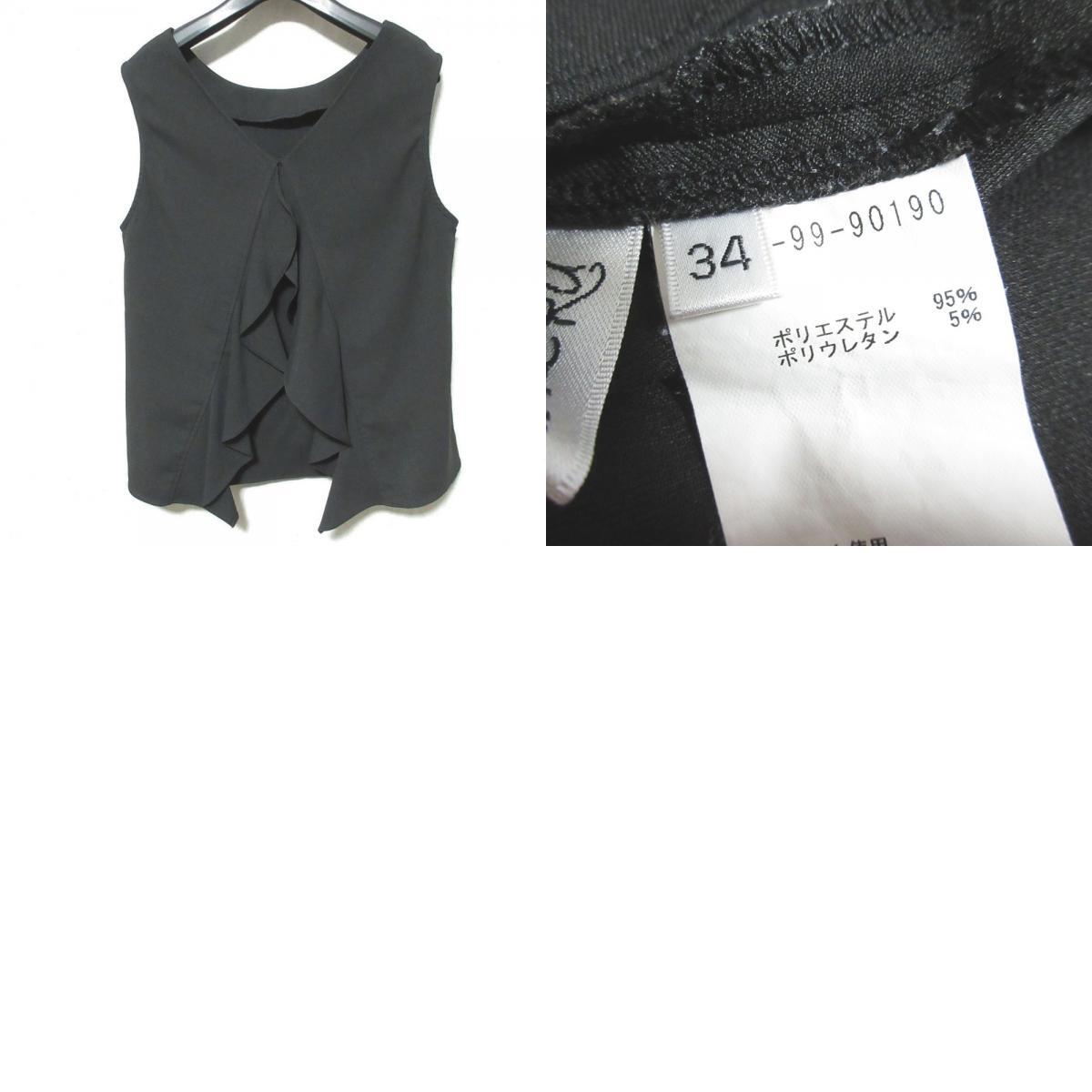 商品名:ABAHOUSE ECRU アバハウスエクリュ ノーカラージャケット ノースリーブブラウス パンツ 3ピース サイズ34 ブラック