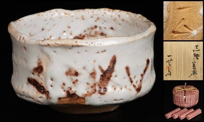 穏やかで格調高い風格の中に豪胆さと静けさが同居しており、唐九郎志野の代表格とも言える名碗として見る者を魅了します。