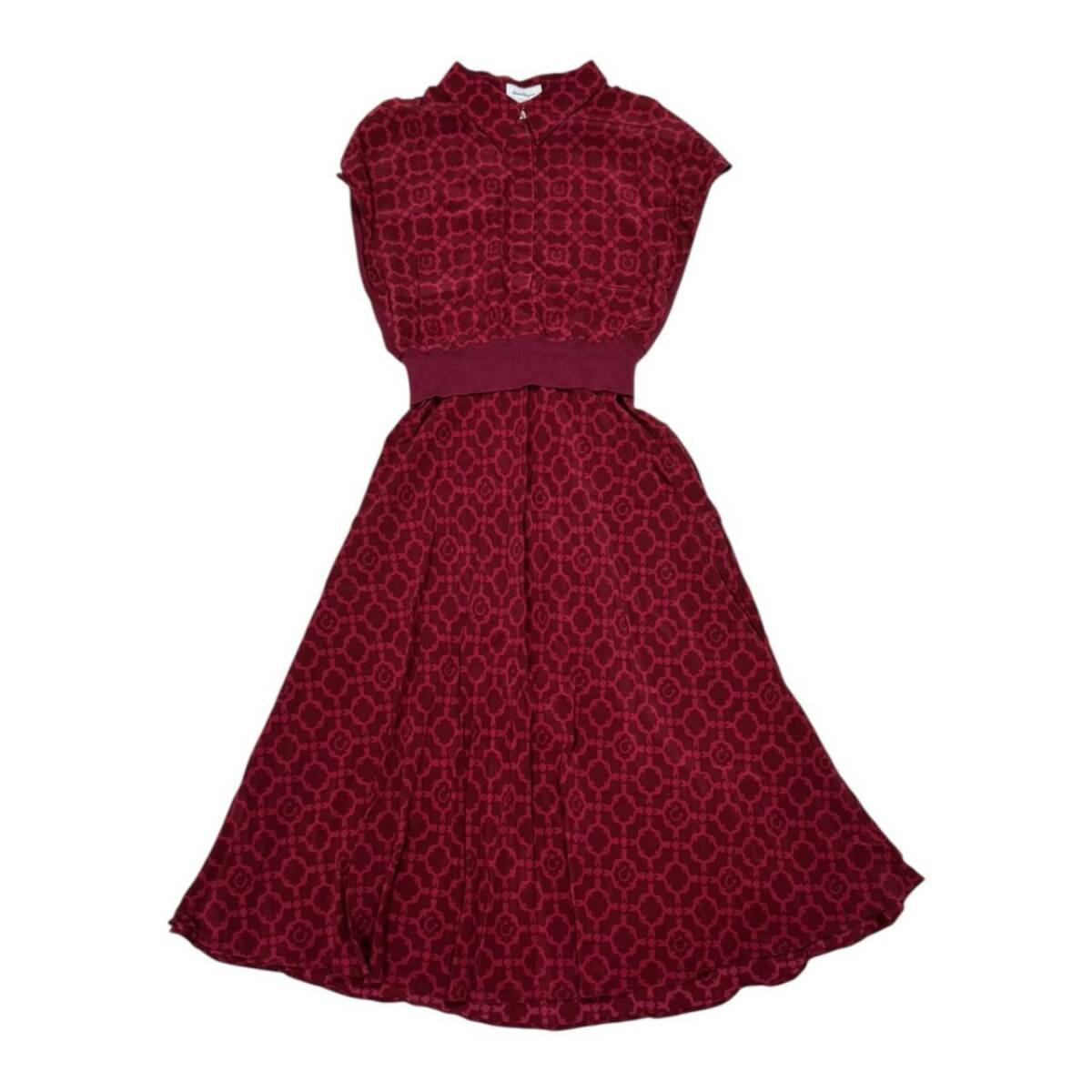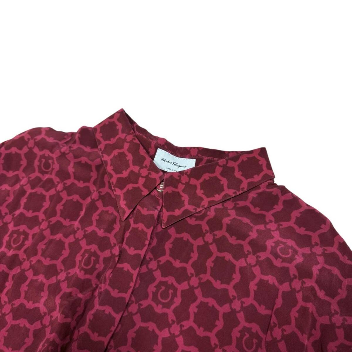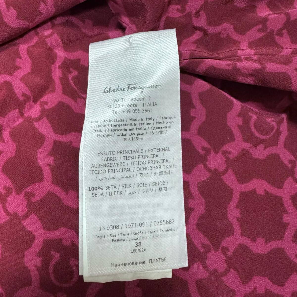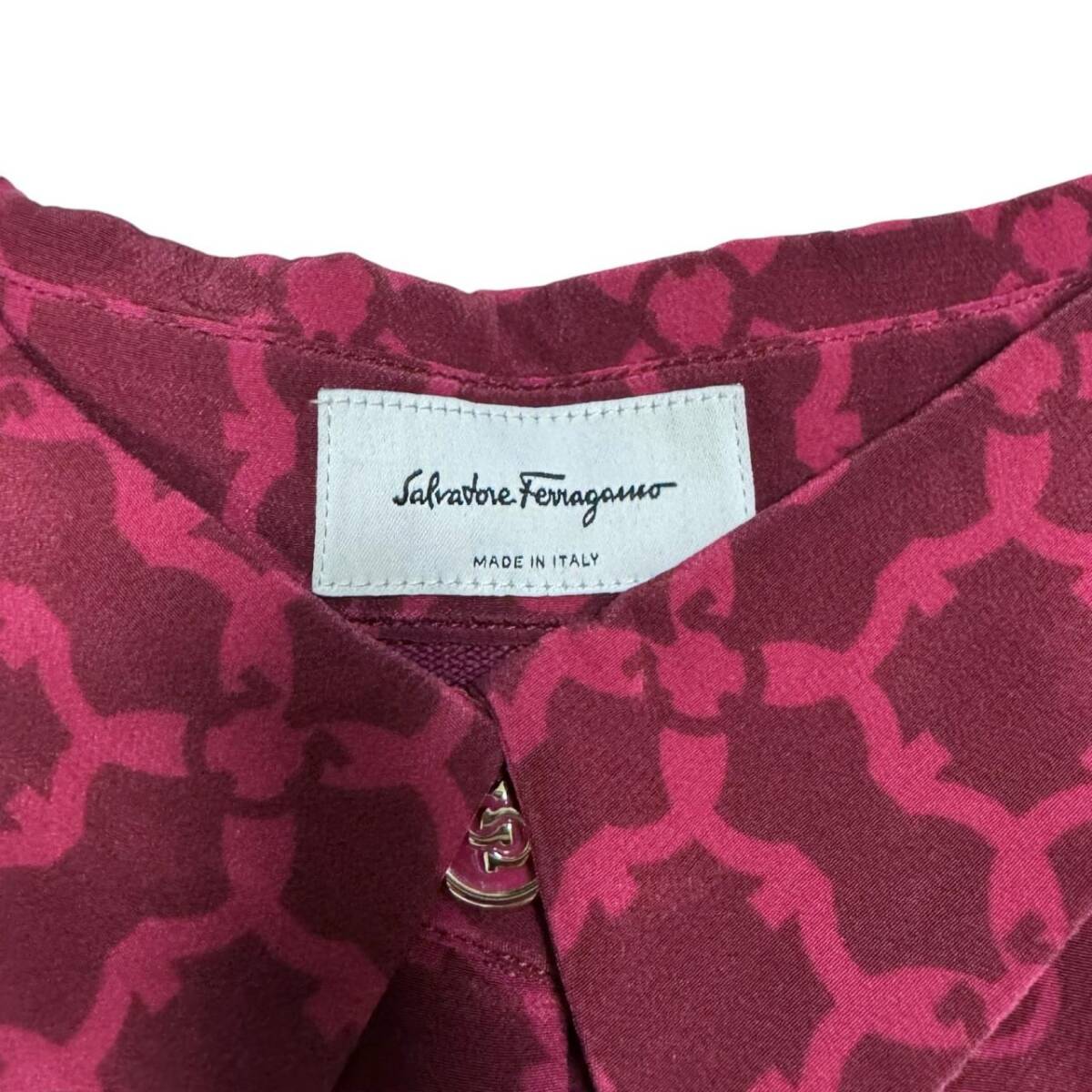 | Salvatore Ferragamo フェラガモ ガンチーニ 柄 襟付き ノースリーブ レッド系 ワンピース サイズ38 |