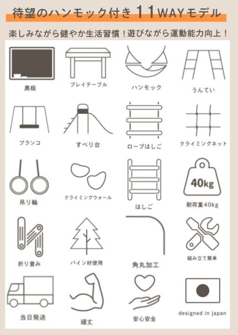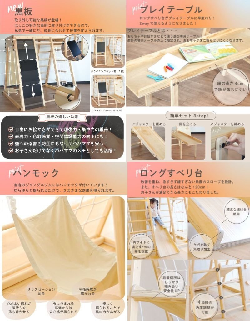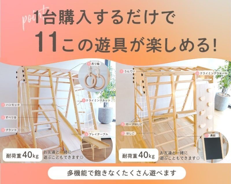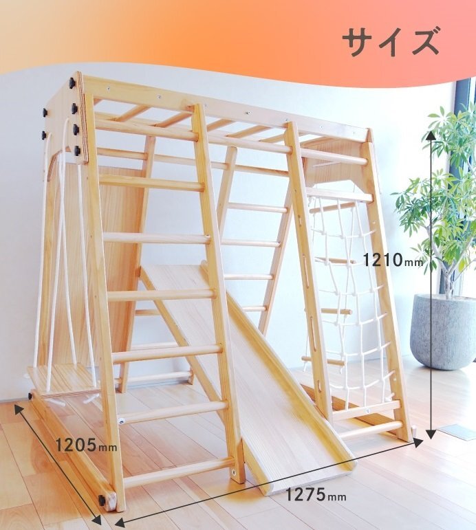 【サンプル】11Way ジャングルジム 滑り台 ブランコ うんてい ハンモック クライミングウォール はしご 室内遊具 子供用 家庭用 2歳から 木製 |