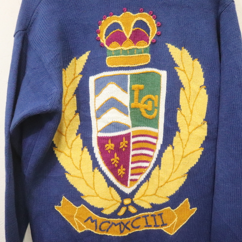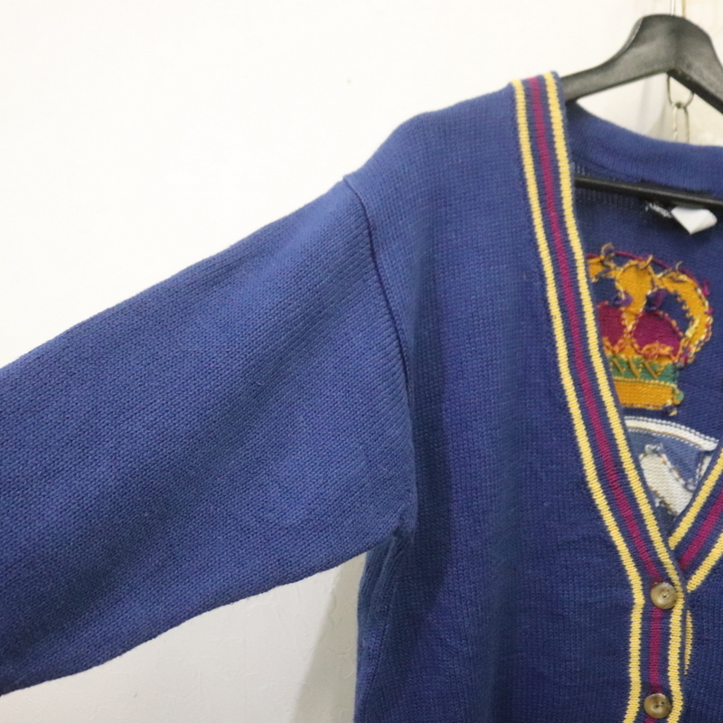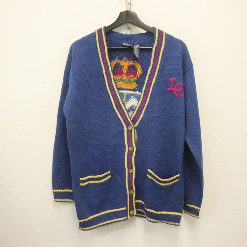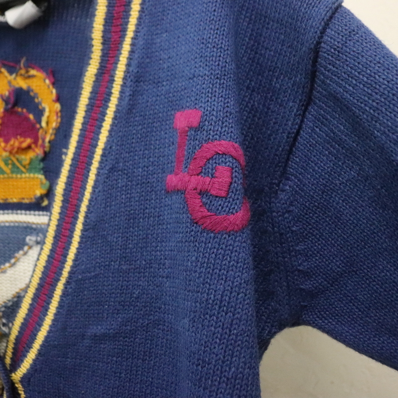 商品名 V35 2000年代製 LIZSPORT コットンニットカーディガン■00s 表記Sサイズ レディース ネイビー 紺 刺繍 アメカジ ストリート 古着 古着卸
