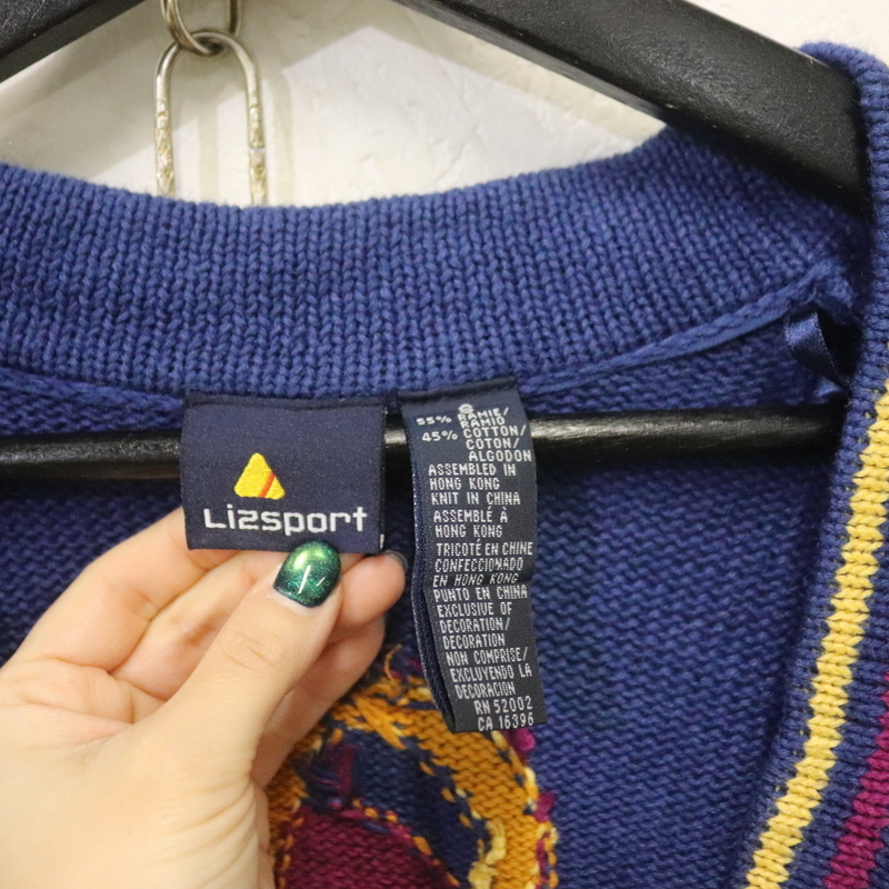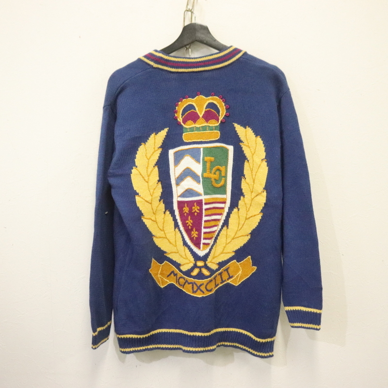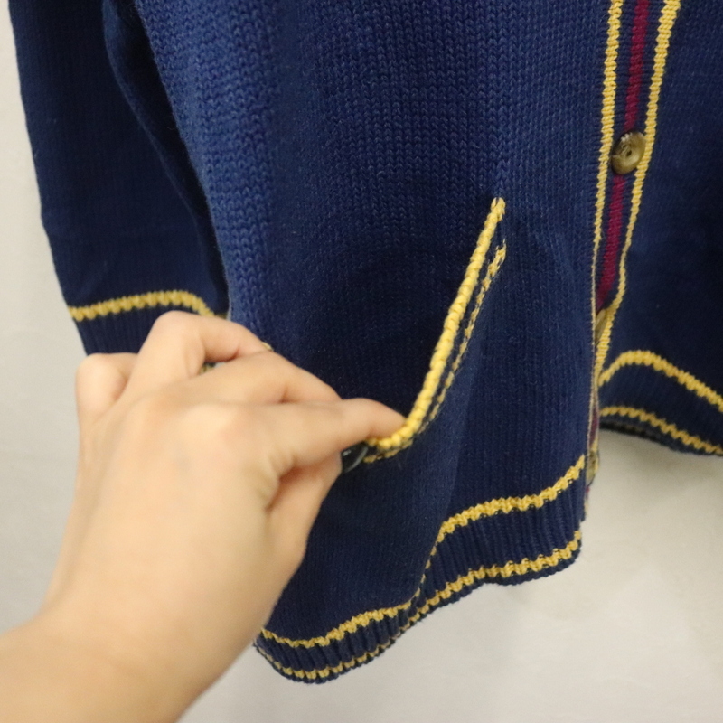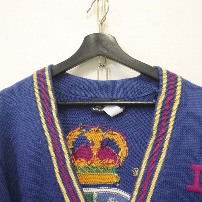 V35 2000年代製 LIZSPORT コットンニットカーディガン■00s 表記Sサイズ レディース ネイビー 紺 刺繍 アメカジ ストリート 古着 古着卸