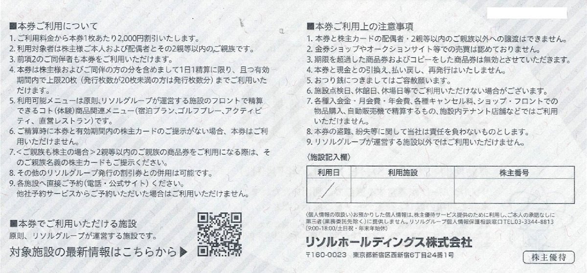 リソル ファミリー商品券 2000円×10枚・株主カード セット