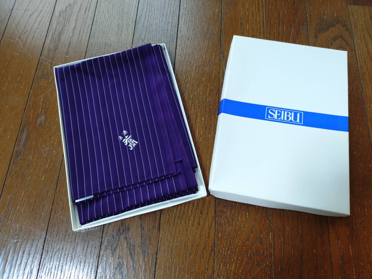 ★●■■★非売品 当時物 酒造メーカーノベルティ 福島 清酒 若関 紫ふくさ 風呂敷 慶弔両用 西武デパート