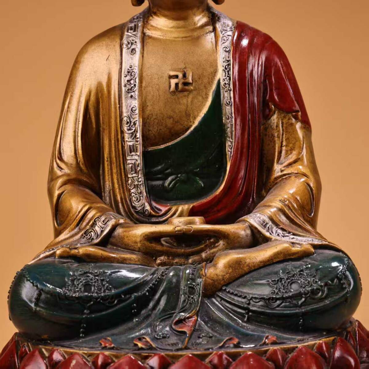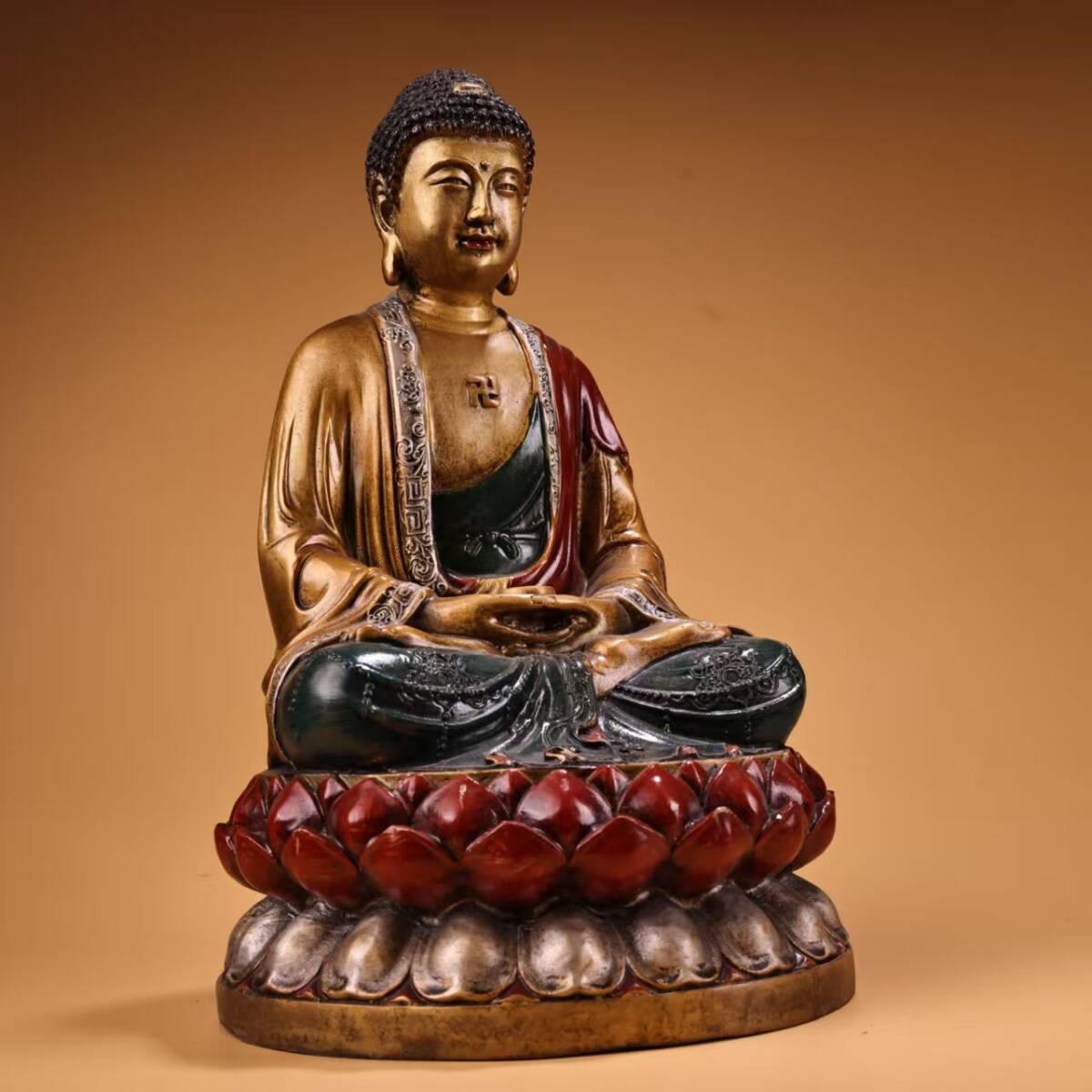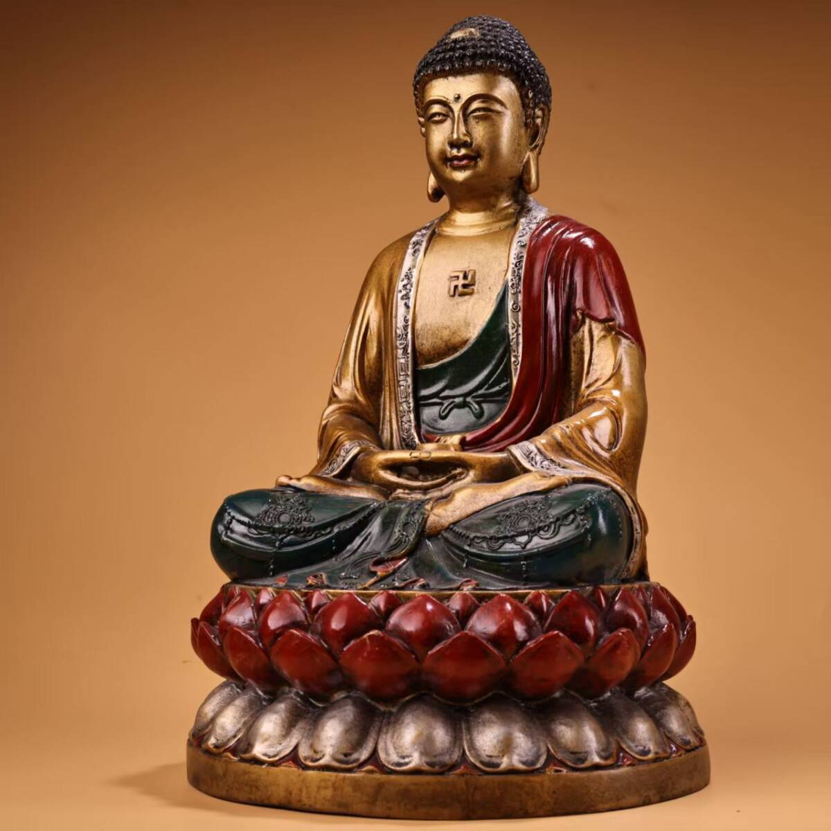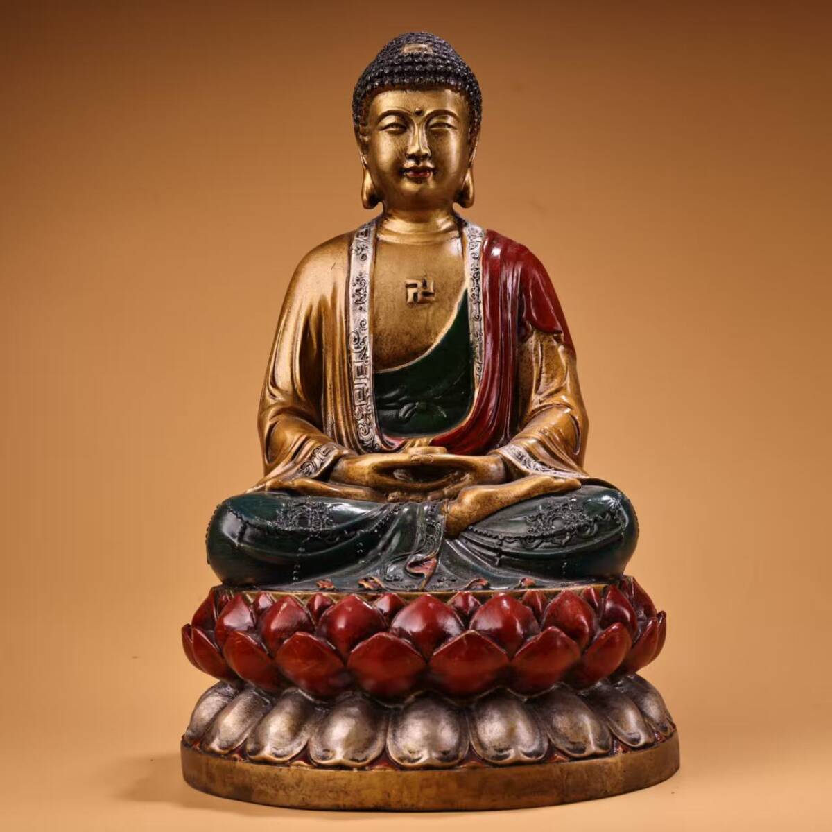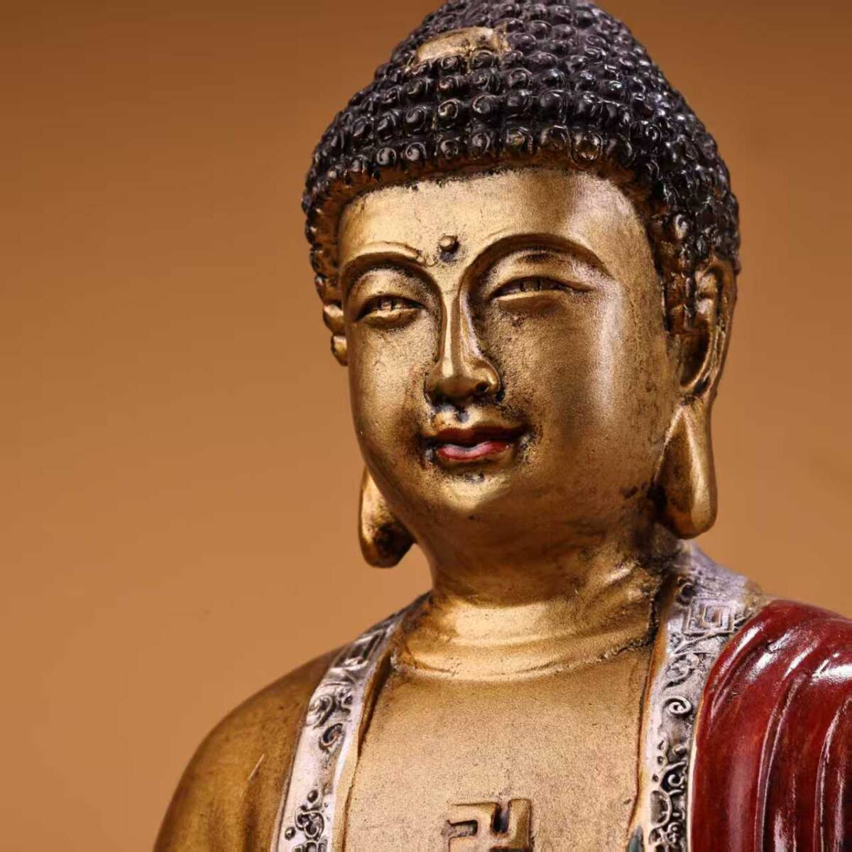 唐物 仏像 清時代 古銅 絵に描いた金如来仏像 銅彫 仏教古美術 廃寺旧蔵 廃寺買出品 供養品き時代物 古置物 中国古玩 骨董品 旧家蔵出し11