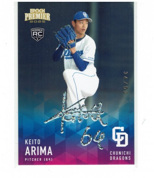 【有馬恵叶】2025 EPOCH 中日ドラゴンズ プレミア 50枚限定 DECOMORI ホロ箔押しサイン入りルーキーカード #34/50