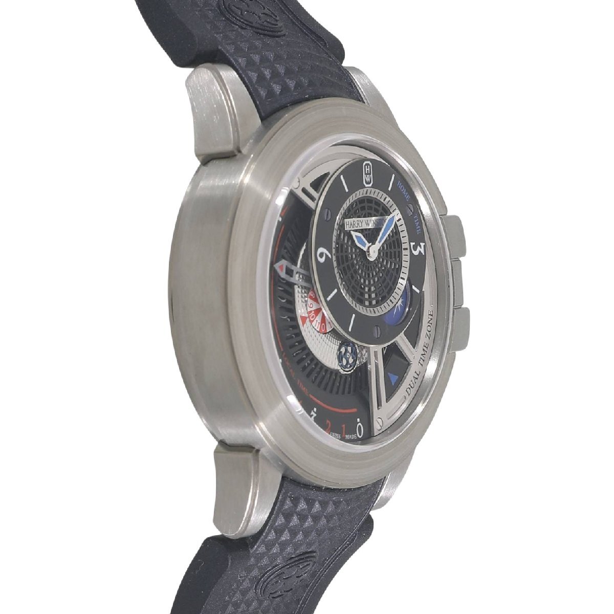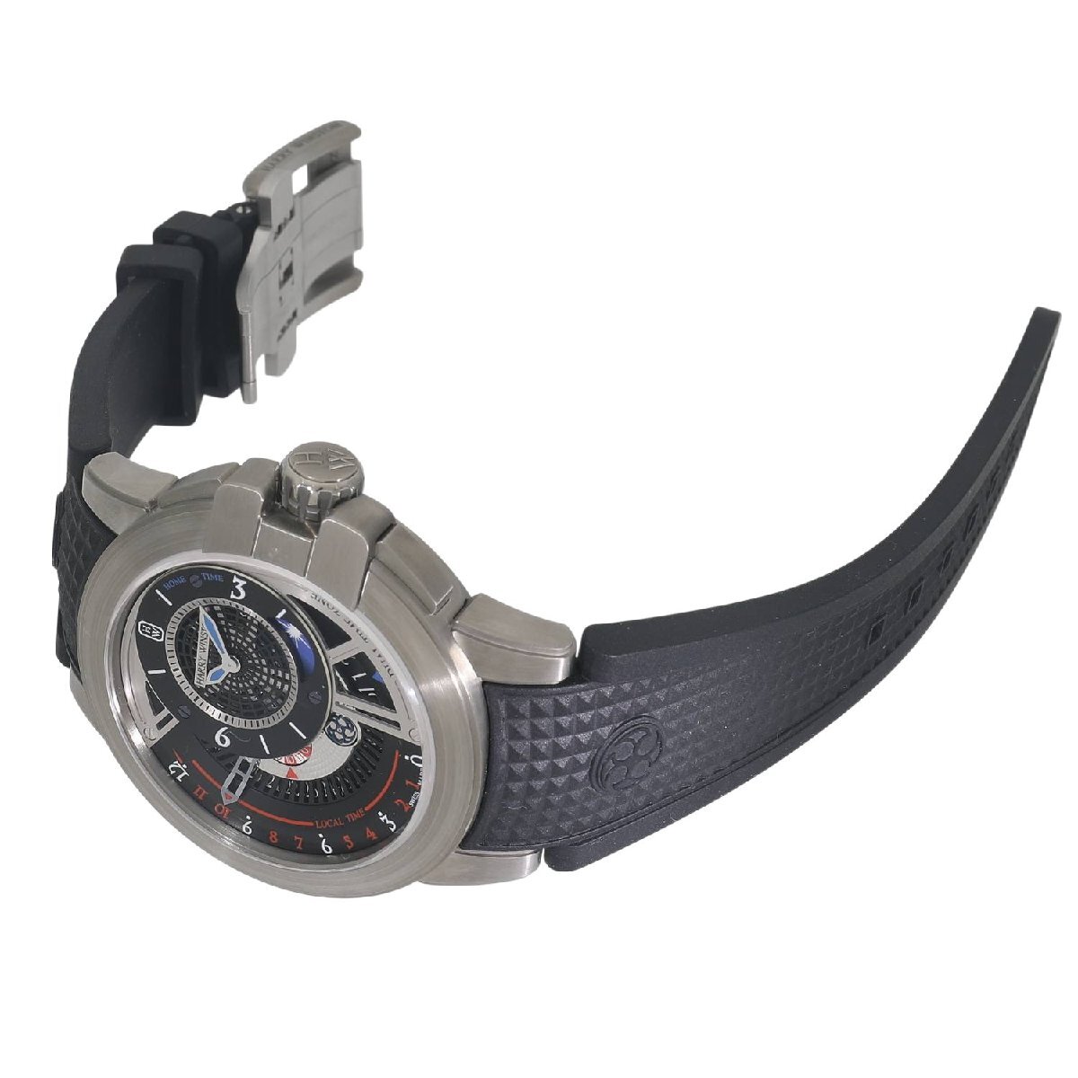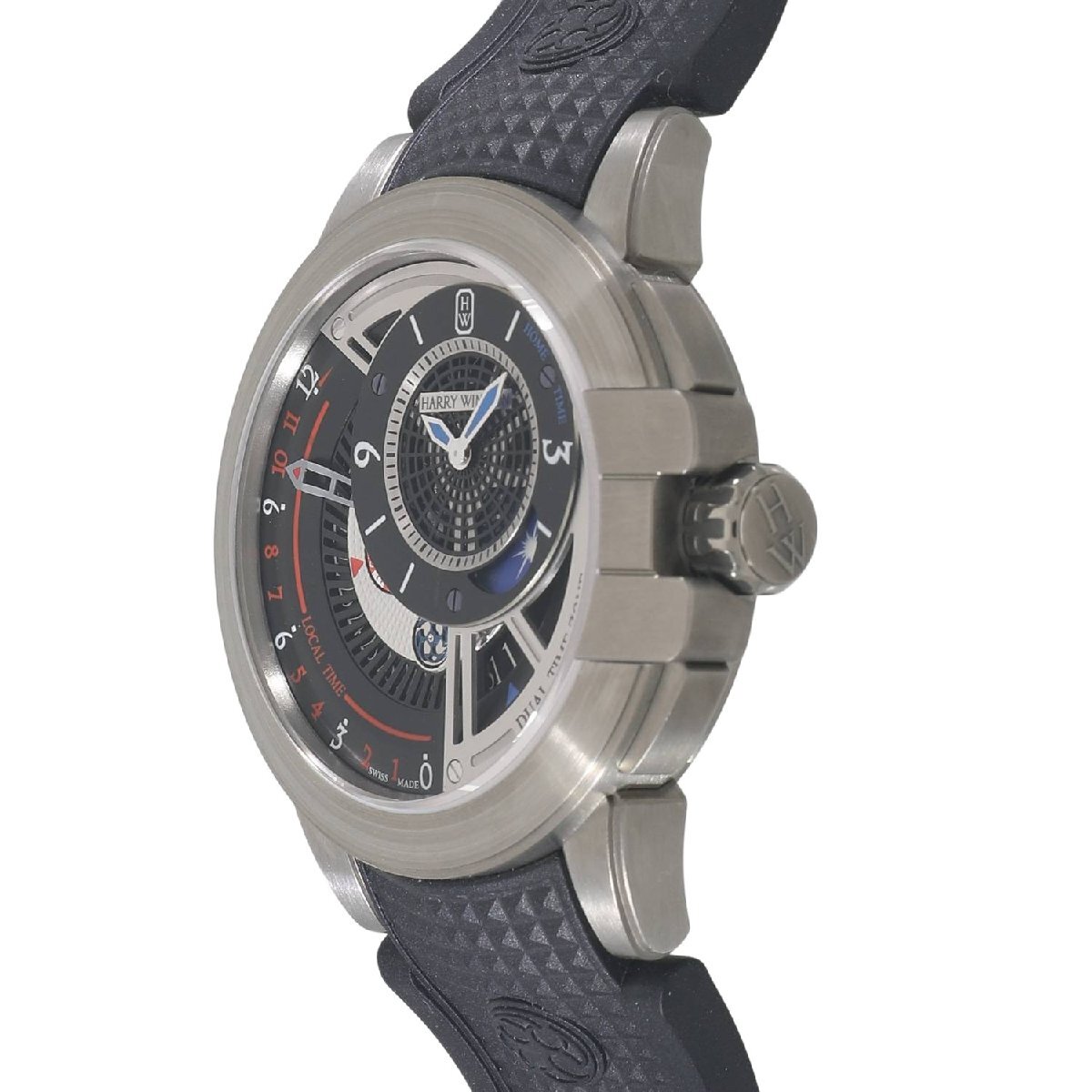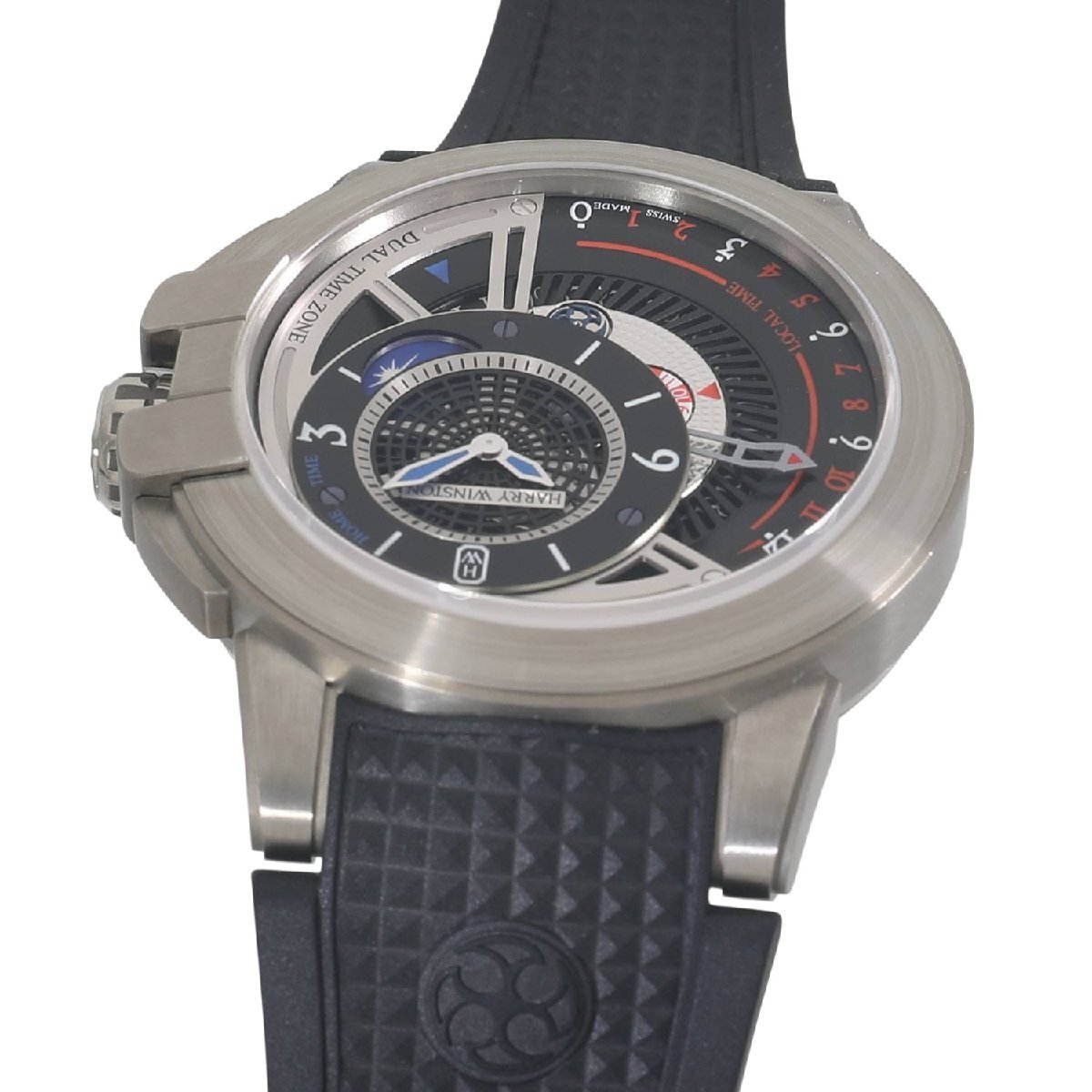 モデルについて | キングオブダイヤモンドとも称されるハリーウィンストンが展開する時計コレクション。インパクト溢れる特徴的なラウンドケースから張り出すリューズガードが目を惹く、ラグジュアリーな雰囲気を醸すスポーツウォッチとして人気のオーシャンコレクション。プロジェクトZは2004年からスタートし、毎年異なるモデルで展開される人気のシリーズです。このZ8ではデュアルタイム機能を搭載しており、ホームタイムはオフセンターに配した時分針で表示、ローカルタイムはレトログラード式の針で表示します。ホームタイムの下にはホームタイムに連動するデイ&ナイト表示、そのさらに下にはカレンダー機能を備えています。 |