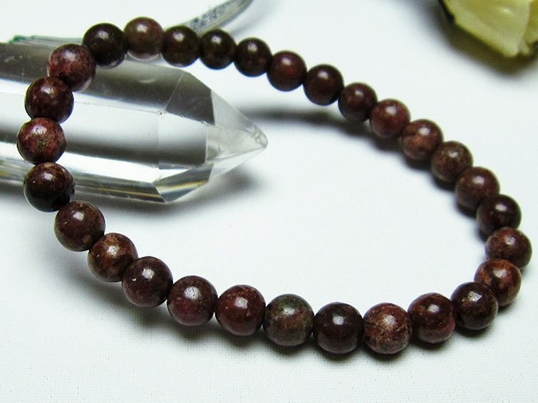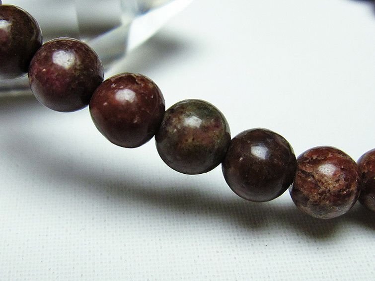 ■商品名: ロードナイトブレスレット ■商品ID: L325-373 ■商品重量:約 12.7g ■商品サイズ:内周約:148mm(±5mm)粒直径約:6mm(±0.5mm) 【ロードナイト】 ロードナイトは、素朴な力強さを持つ石です。友愛を象徴する石と言われるように、すべてを包み込むような愛のエネルギーをもち、友人や家族、その他の人々に対して包容力と寛大な心を持って接することができるようサポートしてくれます。また、肉体のエネルギーを活性化させ新陳代謝を促す力があり、怪我をした時の細胞の再生や体の回復を助けます。子育てや人間関係からくるストレスや疲労などを緩和する力もあるので、日常的にお守りとして持ち歩く石としてもとてもオススメです。 ロードナイトが友愛の石と呼ばれ、寛大さや包容力を象徴する石とされる理由の一つには、肉体の不調を和らげたり、疲労やストレスを緩和する力を持つ事が強く関係していると思われます。肉体の不調から来る精神状態の乱れは、人間関係の摩擦を引き起こす原因となります。肉体の不調を和らげ、ストレスを緩和する力を持つロードナイトは、愛に満ちた人間関係を築くためにとても有益な石と言えるでしょう。 |