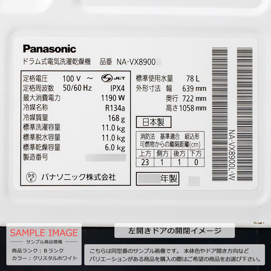 型番/バリエーション | NA-VX8900L-W(左開き/クリスタルホワイト) NA-VX8900R-W(右開き/クリスタルホワイト) |