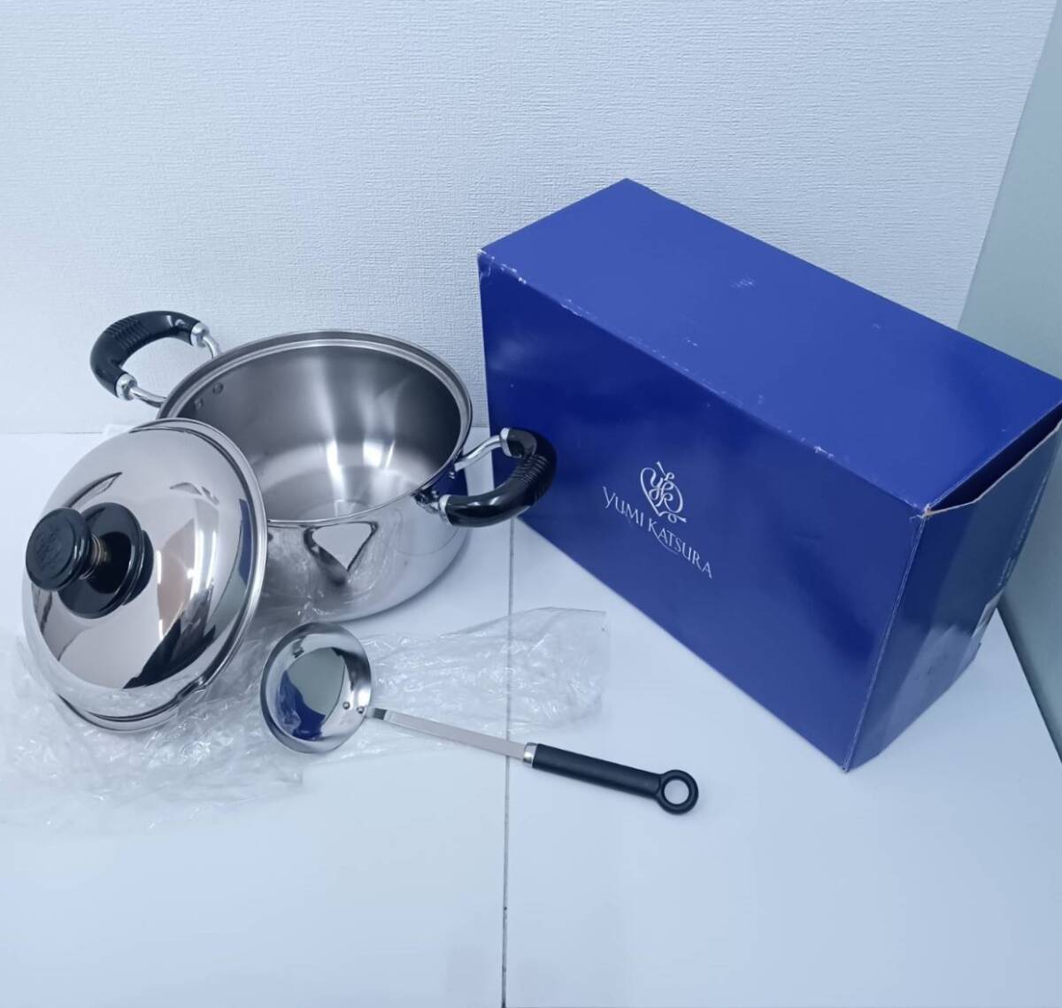 #2639 未使用品 桂由美 YUMI KATSURA ステンレス鍋 KY-678 ショウワメタル 深型両手鍋 お玉付 ステンレス製鍋 日本製 | ||