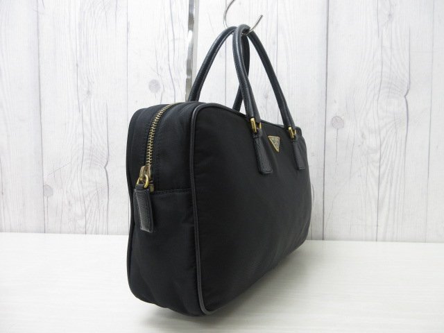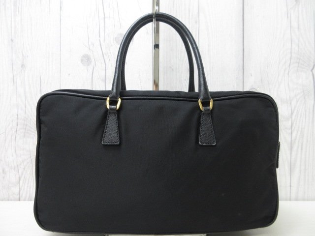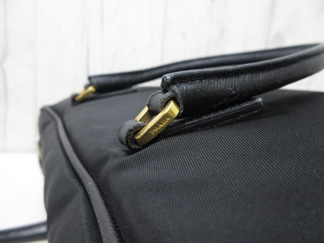 美品 PRADA プラダ テスート ハンドバッグ ミニボストン バッグ ナイロン×サフィアーノレザー 黒 90608 | ||