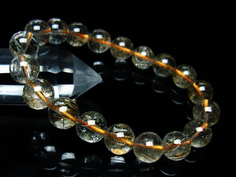 ■商品名: 金針ルチル水晶ブレスレット ■商品ID: T50-9485 ■商品重量:約 28.1g ■商品サイズ:内周約:158mm(±5mm)粒直径約:10mm(±0.5mm) 【ルチルクォーツ(針入水晶)】 ルチルクォーツは近年大人気の針状物質が入った水晶です。繊細な針が水晶の中でひしめきあい、きらきらと輝く様はまさに自然の芸術品。 様々な色のタイプがありますが、共通する効果としては財運や金運を強力に集め、事業運、商売運、目標達成、直観力をもパワーアップさせると言います。また邪気を払ってくれるとされています。 財に関わる直観力が冴えるとされますので、投資やギャンブル運アップも期待できます。 ■ワンポイント情報 一般にクリアでかつ金針が密集しているもの程価値があるとされていますが、内包物を含む水晶は濁ったように結晶しやすく、ルチルクォーツは針が多くなるとどうしても透明感は下がってきます。しかしながら天然石は世界に一つしかありません。いろいろ状態のルチルがありますので直感で閃いたものが、世界で一人の自分のための水晶といえるでしょう。 気の遠くなるような年月をかけ育つ水晶の中に、偶然に針状物質が入り込む。この奇跡のような自然の神秘に是非触れてみて下さい。体の底からパワーが湧き出してくるはずです。 【水晶(石英、クリスタルクォーツ)】 水晶とは石英を指しますが、一般的に無色透明のものをクリアクォーツやロッククリスタルと呼んでいます。 水のように美しく透き通ったものが良いと思われがちですが、内部にヒビや他の鉱物などのインクルージョン(内包物)が入っているものがあり、それが天然物の証。また、インクルージョンによって様々な種類に分類され、それぞれ違った印象を与えてくれます。 古くから呪い事に使われてきた水晶に秘められたパワーはとても万能で、あらゆる場面に対応するといわれています。特に邪気を祓う力が強いため、人間関係を円滑にしたり、心身をクリアな状態にしたい場合に最適です。また空間を浄化する作用もあるとされ、インテリアとしても高い人気を誇っています。 石自体に強い自浄作用があり、他のパワーストーンが吸収した負のエネルギーを浄化するといわれています。更にアクセサリーとして他の石と組み合わせる場合、それぞれの石の個性を引き出しバランスを取ってくれる効果があるそうなので、ぜひとも組み込んでおきたいですね。 パワーストーン入門に最適な水晶ですが、愛好家にとってはかなり奥が深く最後に行き着くのもこの石なんだそうです。何もかもを見透かすような透明な水晶には、本当に神秘的なパワーが宿っているのかもしれません。 |