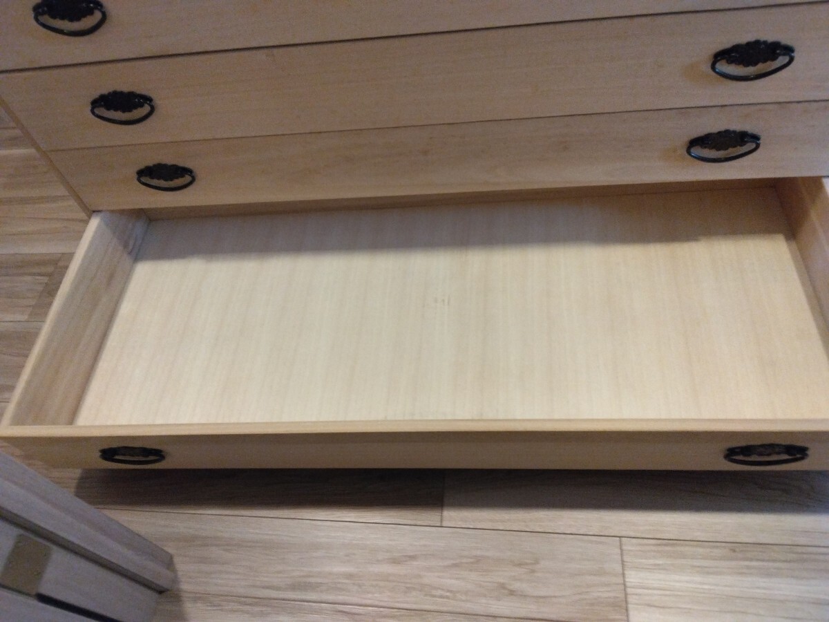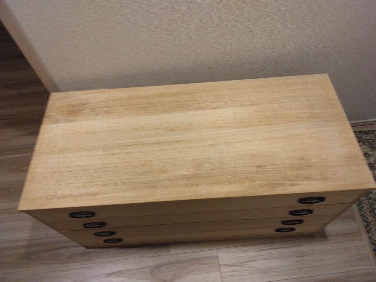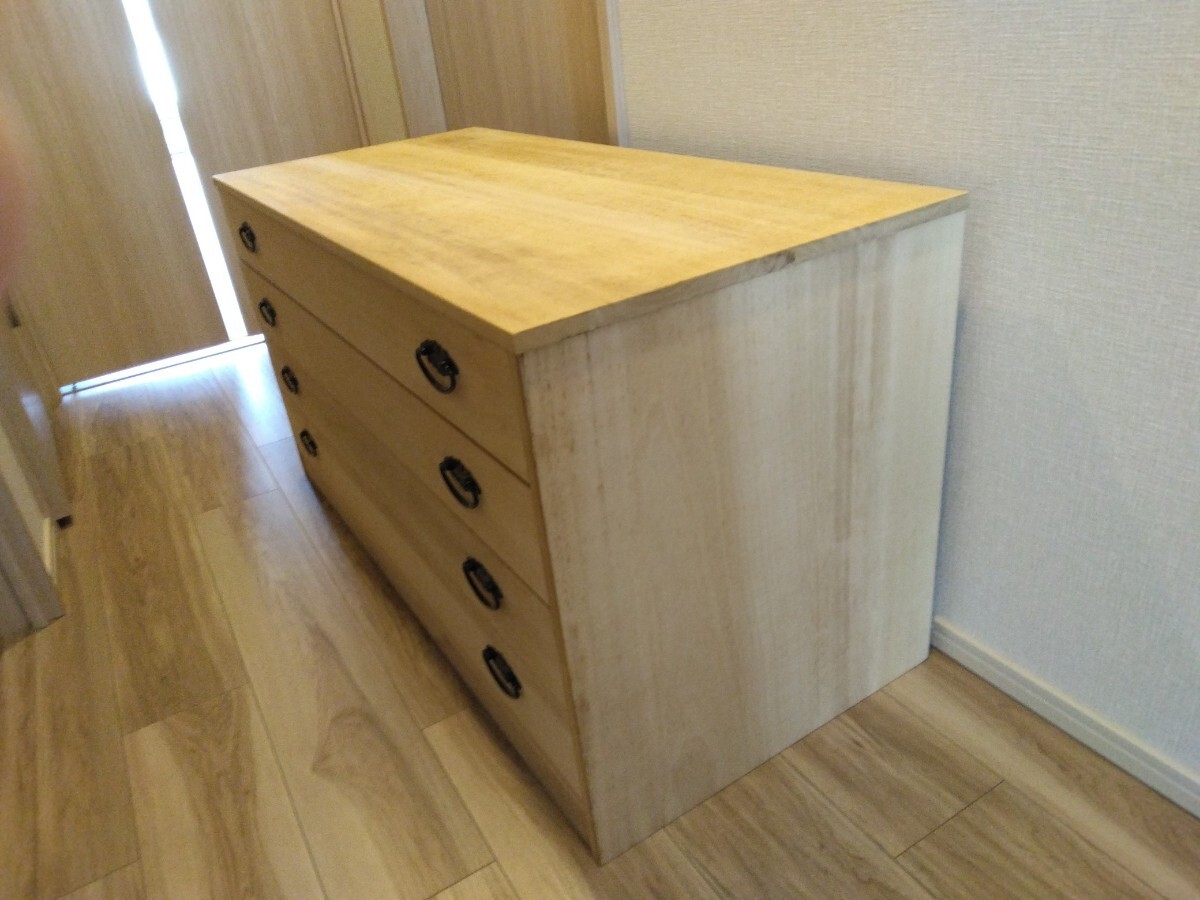 6年前生活協同組合より購入した桐製の4段引き出しの箪笥です。和室にも洋室にも合うシンプルなデザインで、着物などの和装品だけでなく、衣類や小物収納にもお使いいただけます。