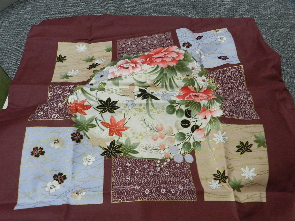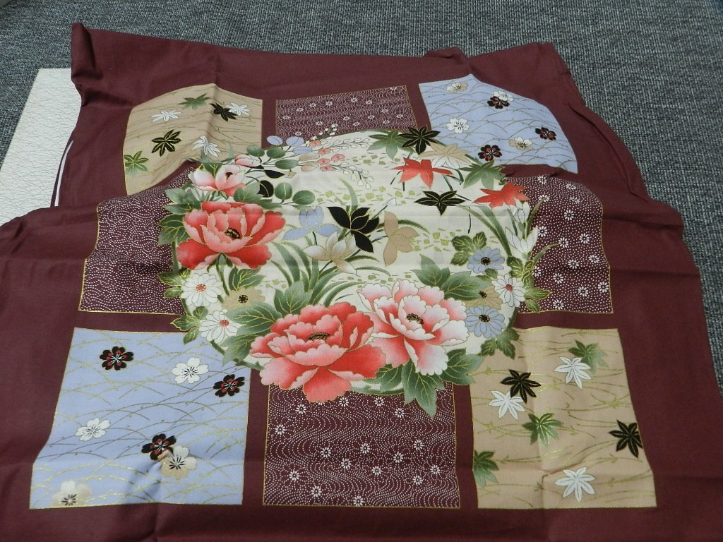 座布団カバー 5枚セット 55㎝×59㎝ エンジ系 日本製 牡丹