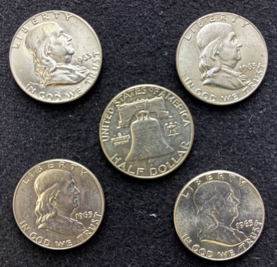 フランクリンハーフダラー銀貨シェルセット<1963年レギュラー4枚・エキスパンディッドシェル1枚>