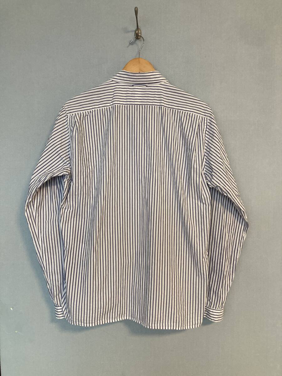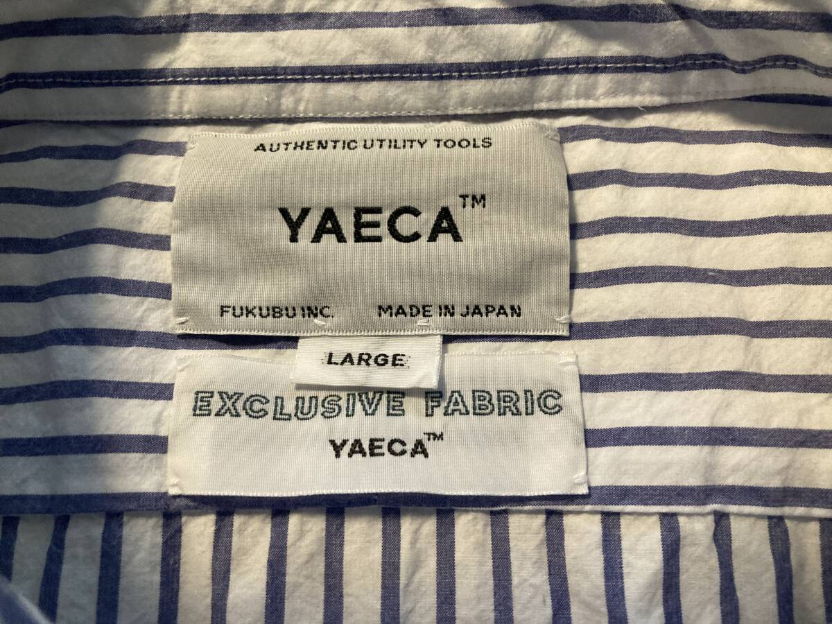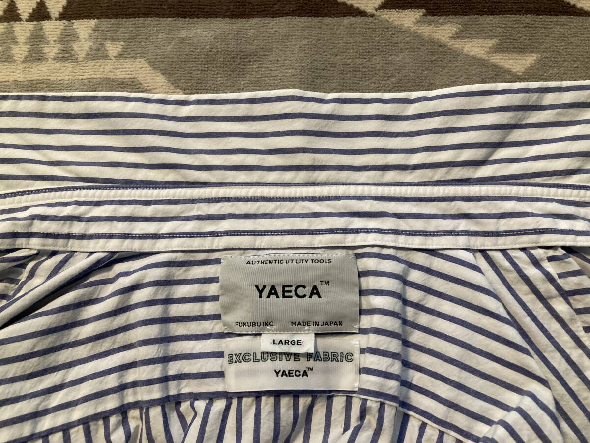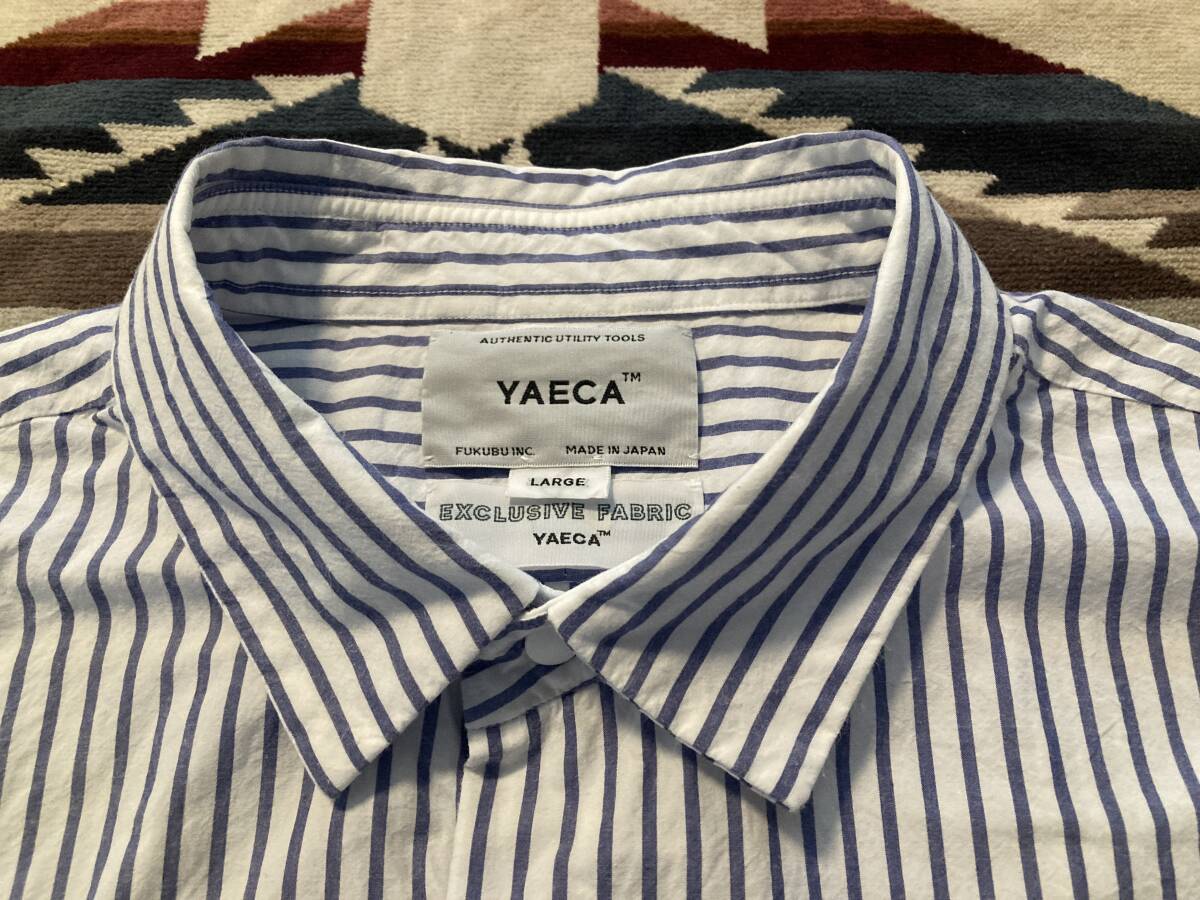 商品名:YAECA ストライプ柄 スナップボタン 長袖シャツ サイズ:表記LARGE 平置き:肩幅46,5cm 身幅(脇下~脇下)およそ56cm 着丈(襟付根~裾)71,5cm 袖丈(肩~袖裾)64,5cm ※素人採寸の為多少の誤差はご了承ください。 カラー:ホワイト、ブルー 状態:MADE IN JAPAN。コットン100%。スナップボタン。ポケット×2。目立ったダメージ等なく一般古着程度だと思います。 発送方法:レターパックプラス(配達記録付600円)orレターパックライト(配達記録なし430円) ※古着になりますので神経質な方、ご理解の無い方の御入札はお控え下さい。送料、振込手数料は落札者様の御負担となります。ノークレーム、ノーリターンでお願い致します。
