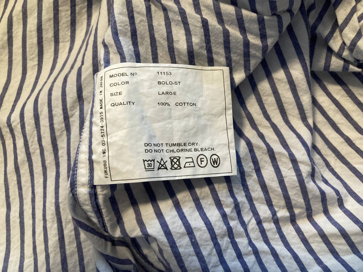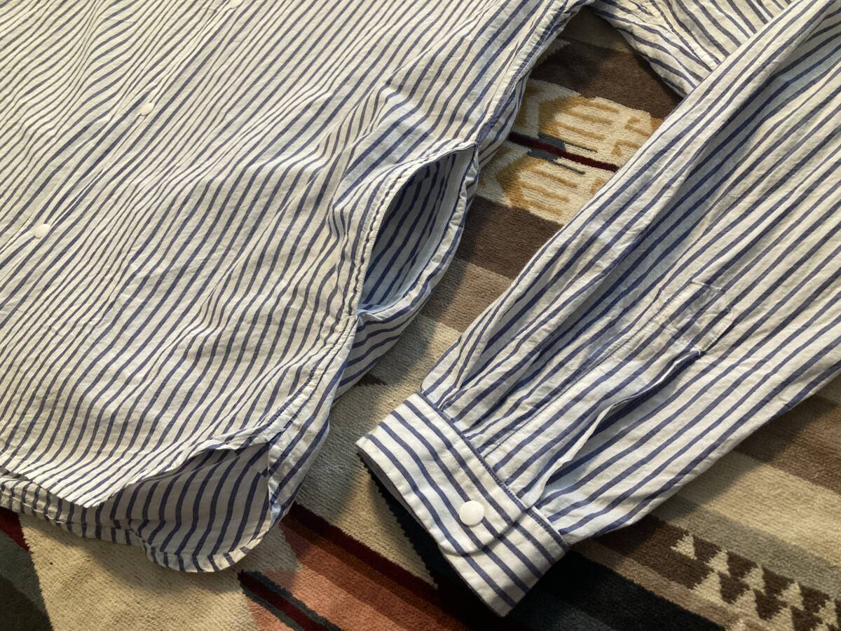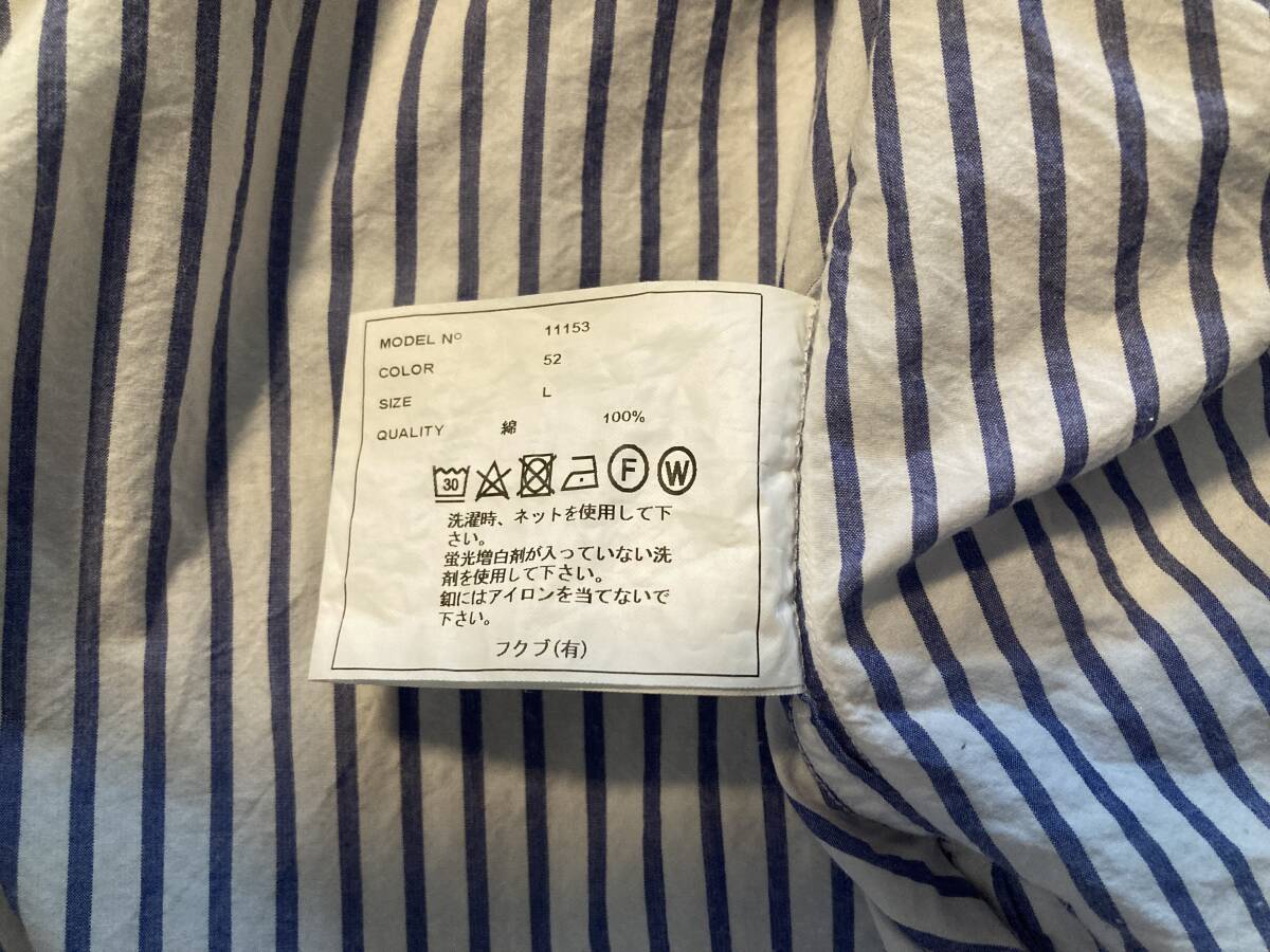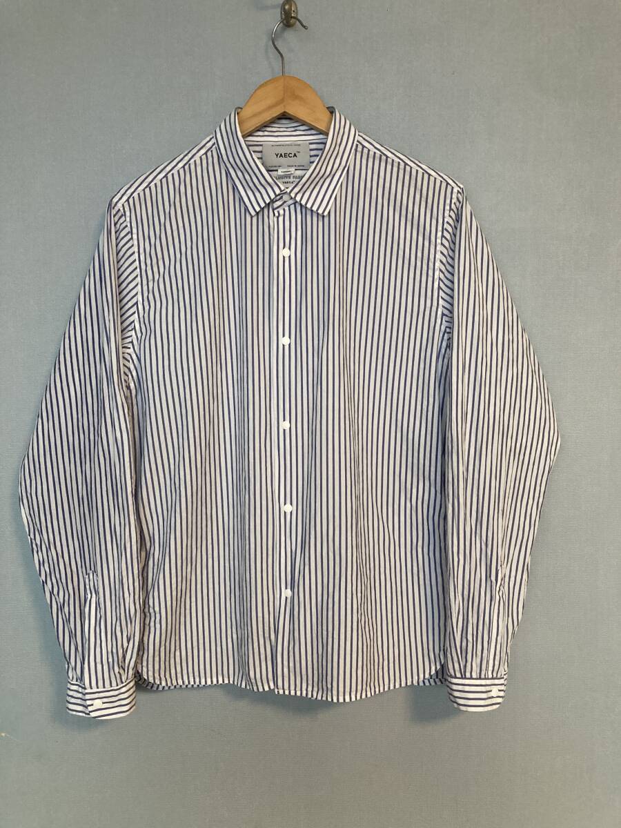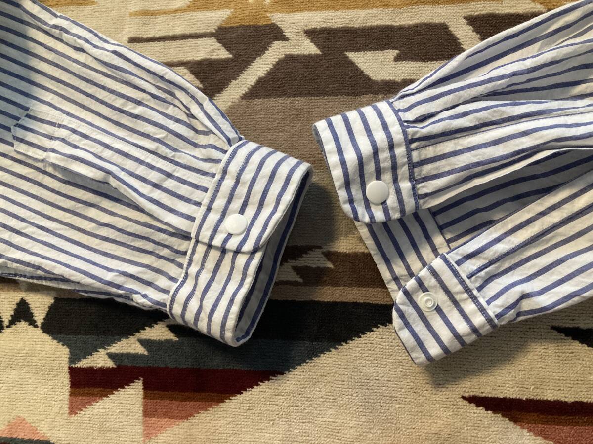 商品名:YAECA ストライプ柄 スナップボタン 長袖シャツ サイズ:表記LARGE 平置き:肩幅46,5cm 身幅(脇下~脇下)およそ56cm 着丈(襟付根~裾)71,5cm 袖丈(肩~袖裾)64,5cm ※素人採寸の為多少の誤差はご了承ください。 カラー:ホワイト、ブルー 状態:MADE IN JAPAN。コットン100%。スナップボタン。ポケット×2。目立ったダメージ等なく一般古着程度だと思います。 発送方法:レターパックプラス(配達記録付600円)orレターパックライト(配達記録なし430円) ※古着になりますので神経質な方、ご理解の無い方の御入札はお控え下さい。送料、振込手数料は落札者様の御負担となります。ノークレーム、ノーリターンでお願い致します。